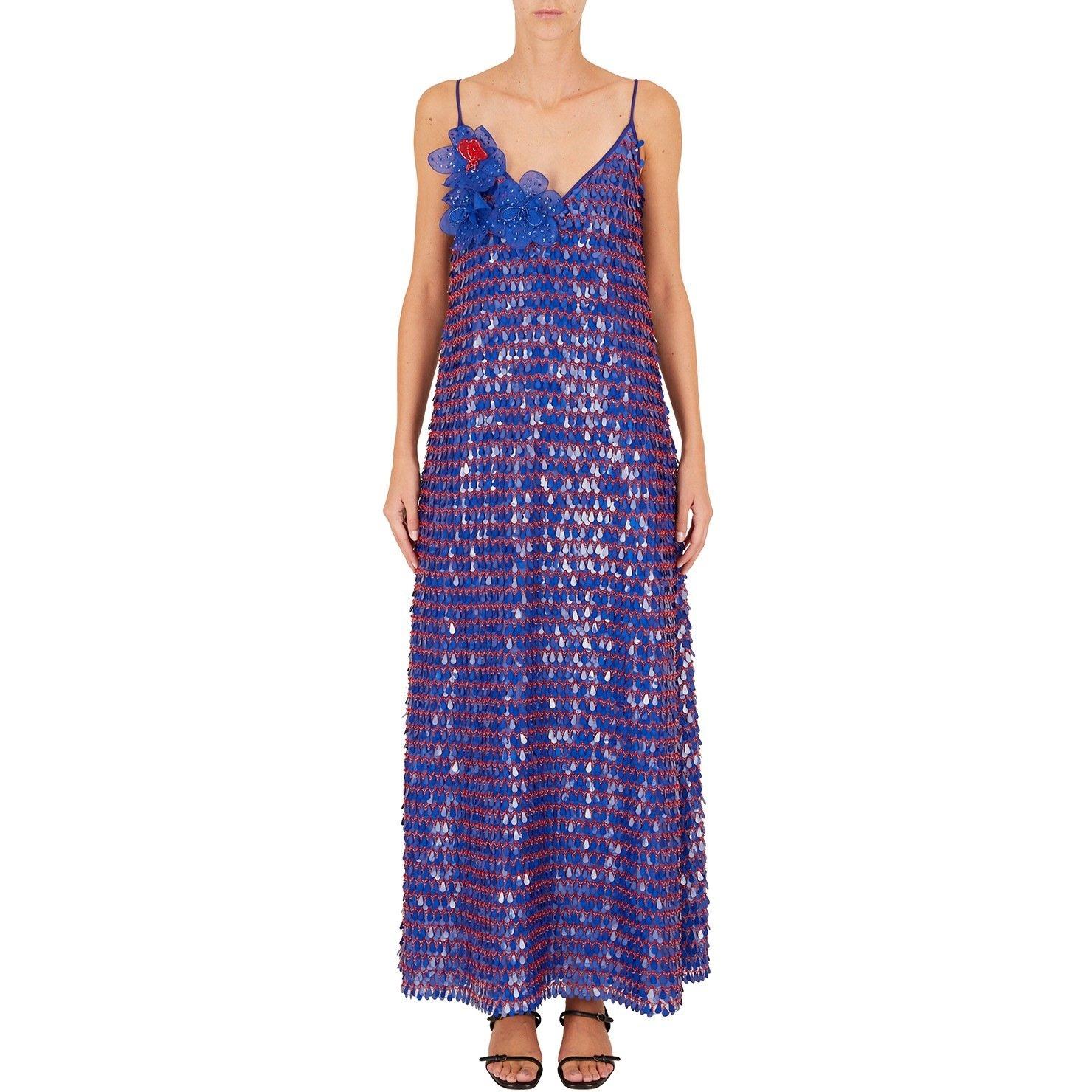 Emporio Armani's Maxi Dress features a long form and evening-appropriate shimmering texture, ideal for parties.