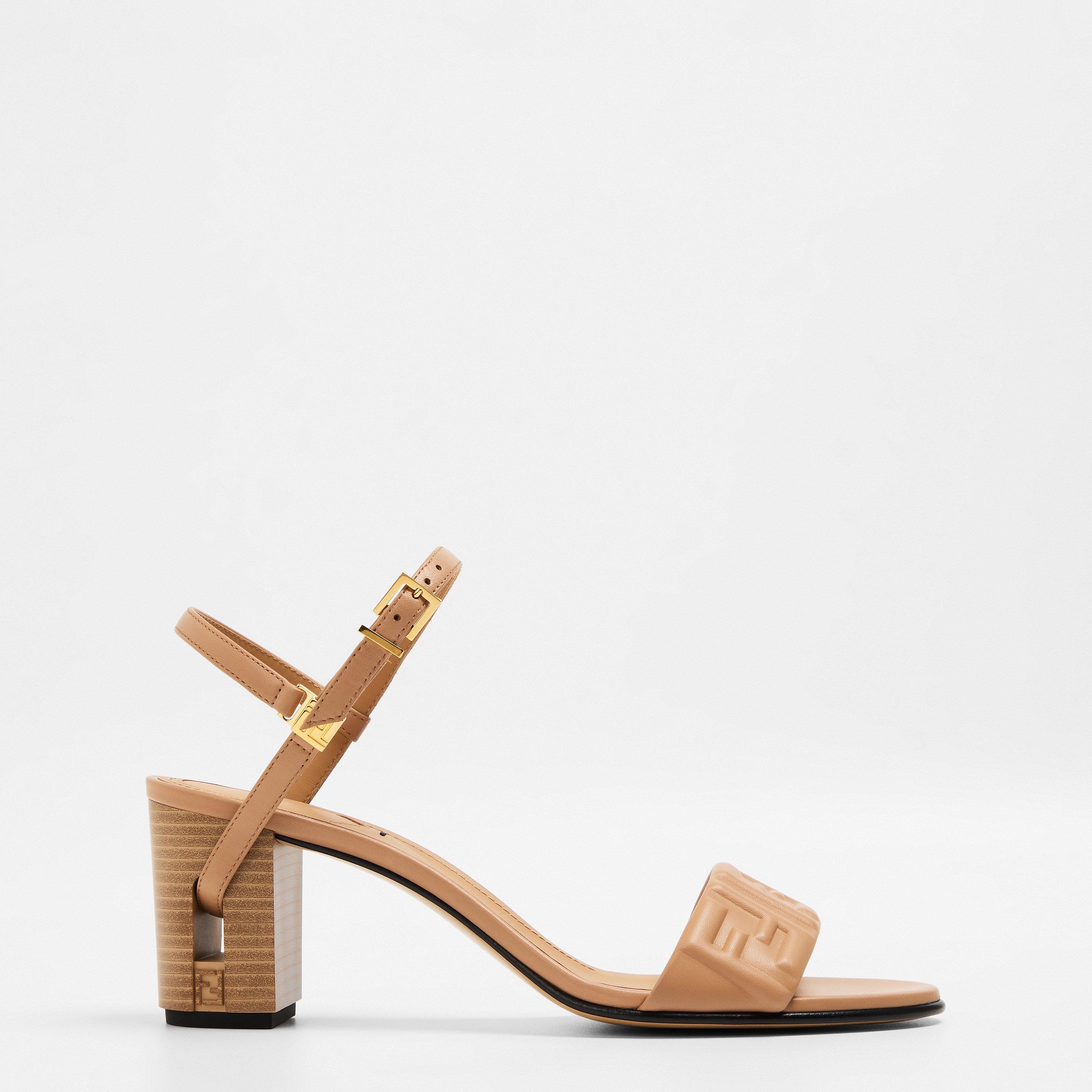 Fendi 65mm Delfina Sandals exude sophistication with a sleek ankle strap featuring a buckle closure and a single toe strap. The medium-high block heel offers both comfort and style, while the embossed FF pattern adds a touch of signature luxury. Perfect for an elegant evening out, a stylish dinner date, or a chic event where comfort meets high-end design.