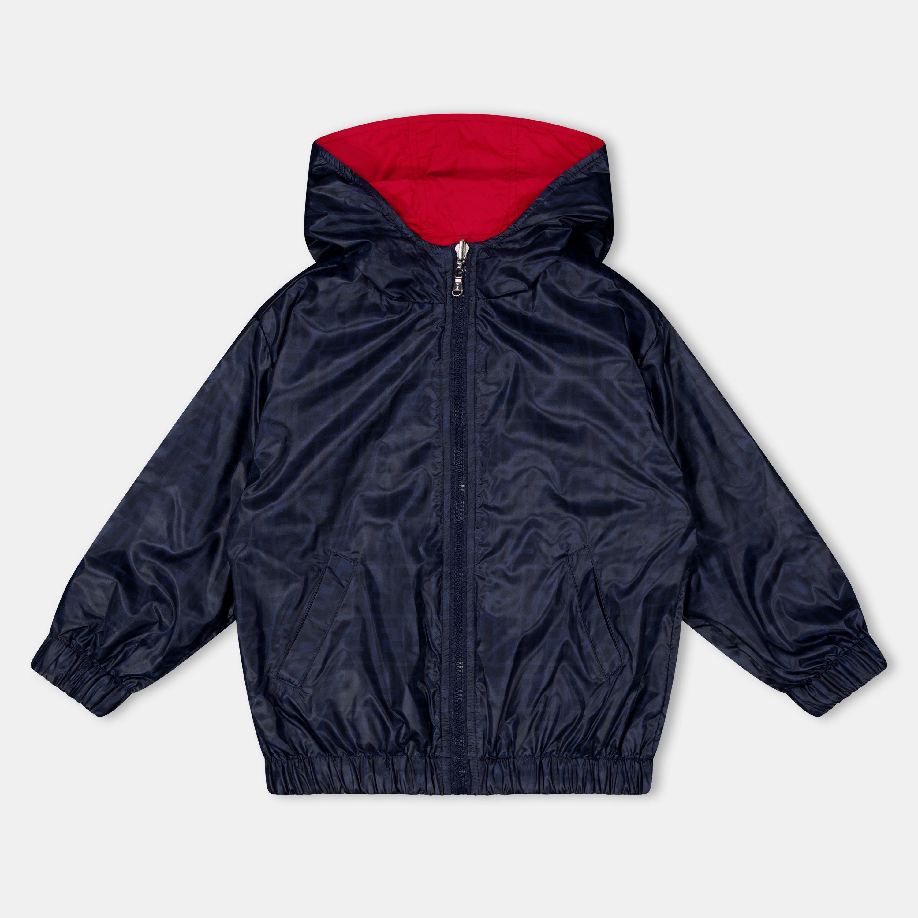 Fendi Kids' All Over Print Lightweight Weather Resistant Windbreaker jacket offers style and practicality for young adventurers. The lightweight shell features the brand's famous patterning while providing essential weather protection in a design suitable for youth of all ages.