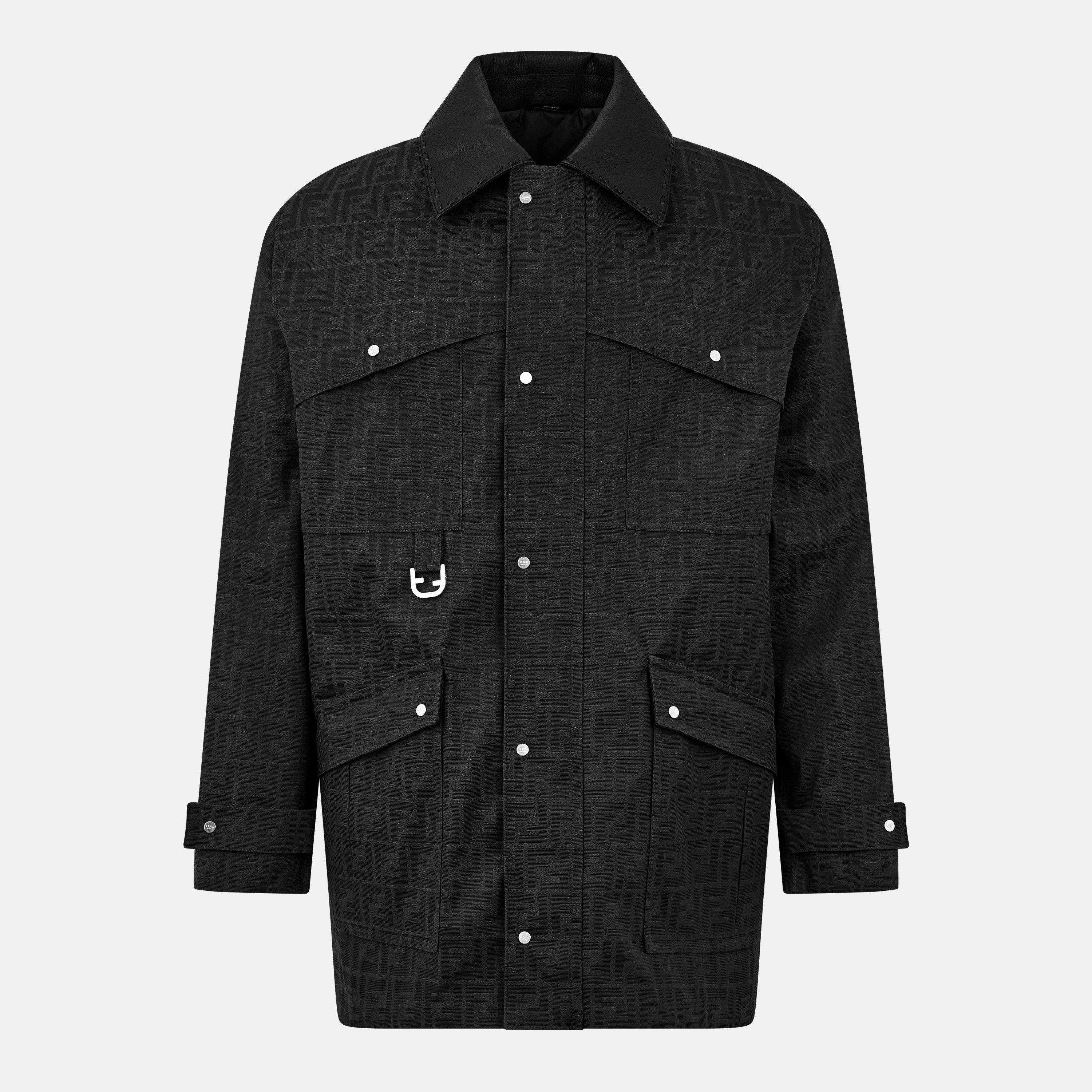 Fendi's Logo Blouson Long Sleeve Coach Jacket delivers style with the brand's DNA. This designer jacket features the double F jacquard pattern, while silver-tone hardware and exaggerated collar topstitching add character. Five-pocket design and an internal drawstring waist ensure this jacket is as functional as it is fashionable.