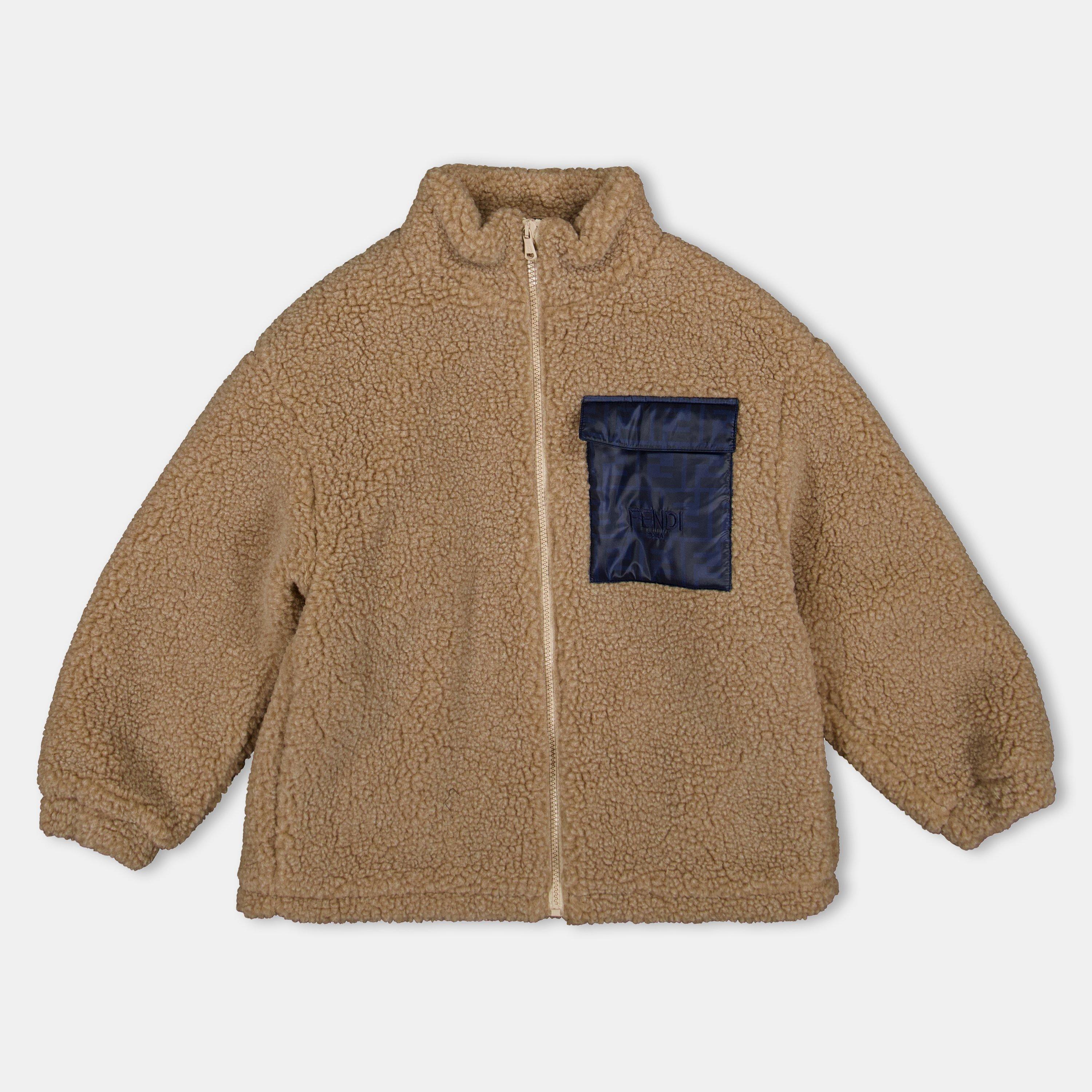 Fendi's Unisex Kids' Teddy Shearling Tailored Fit Jacket offers warmth and style. The structured shape features soft textured panels that provide cosy comfort, while the tailored design ensures a great fit for the child.