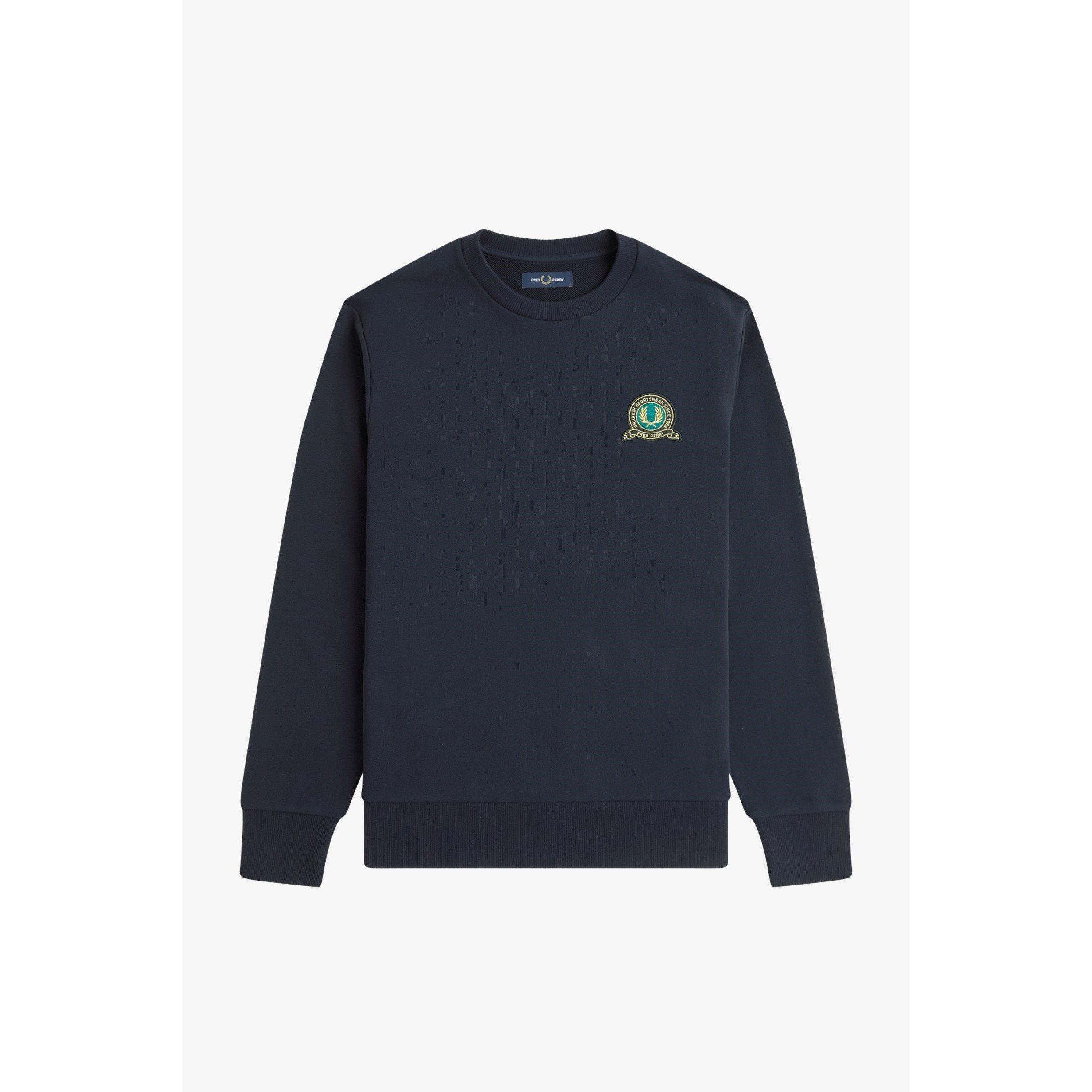 The Fred Perry Men's Badge Crew-Neck Sweatshirt delivers a classic pullover style marked by the laurel wreath emblem. Soft fabric brings comfort to everyday wear.