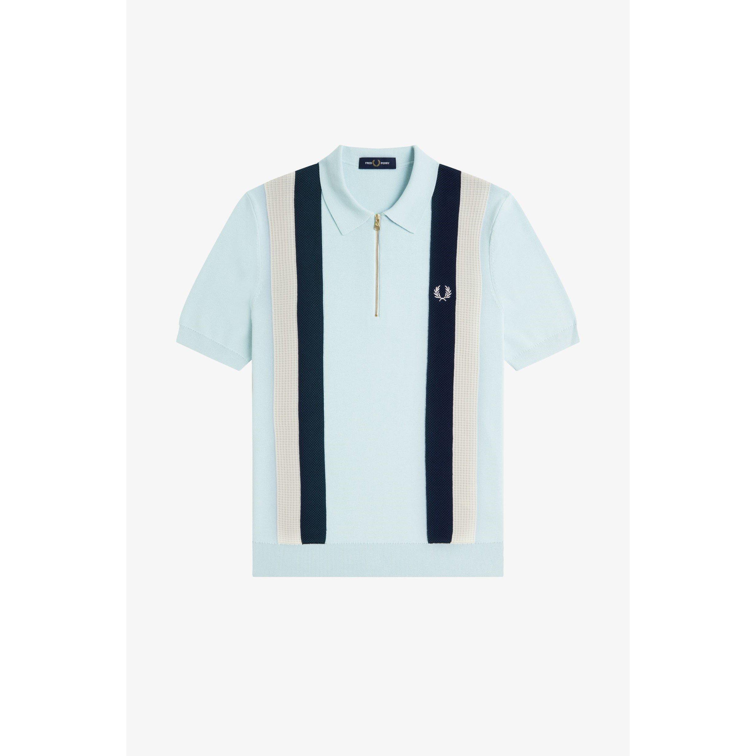 - Vertical stripe pattern with classic Fred Perry detailing