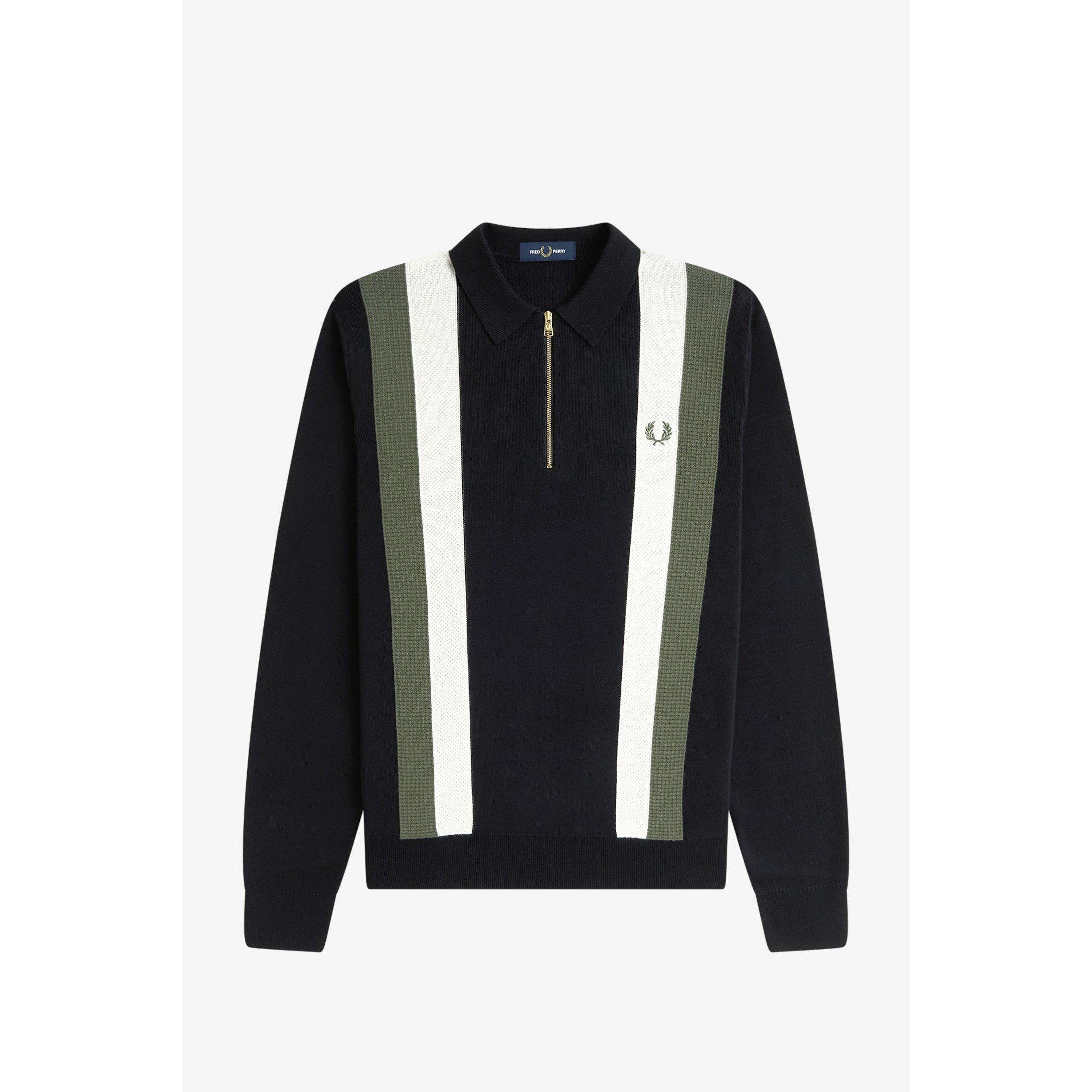 Update your wardrobe staples with this Zipped Striped Polo Shirt from Fred Perry. Steeped in the brand's illustrious history, this stylish key piece features multiple textures for a striking look. Perfect for entertaining friends and family at home or for a casual Friday at the office, you will be reaching for this men's polo over and over.