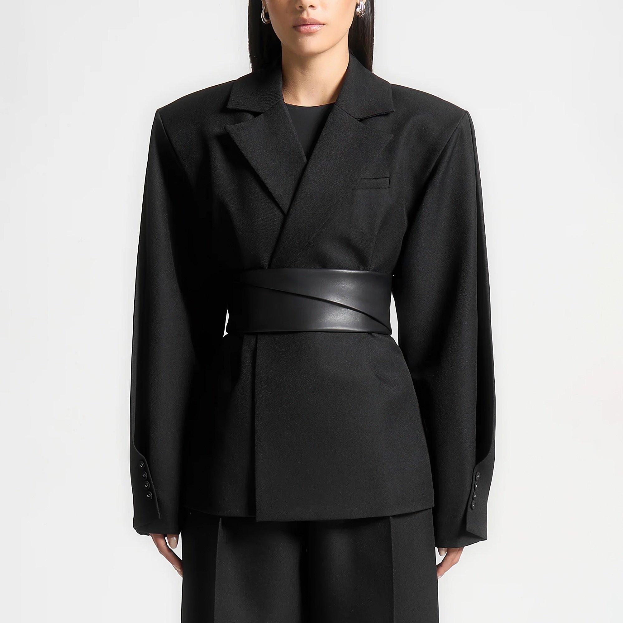 Womens Twist Sleeve Belted Blazer