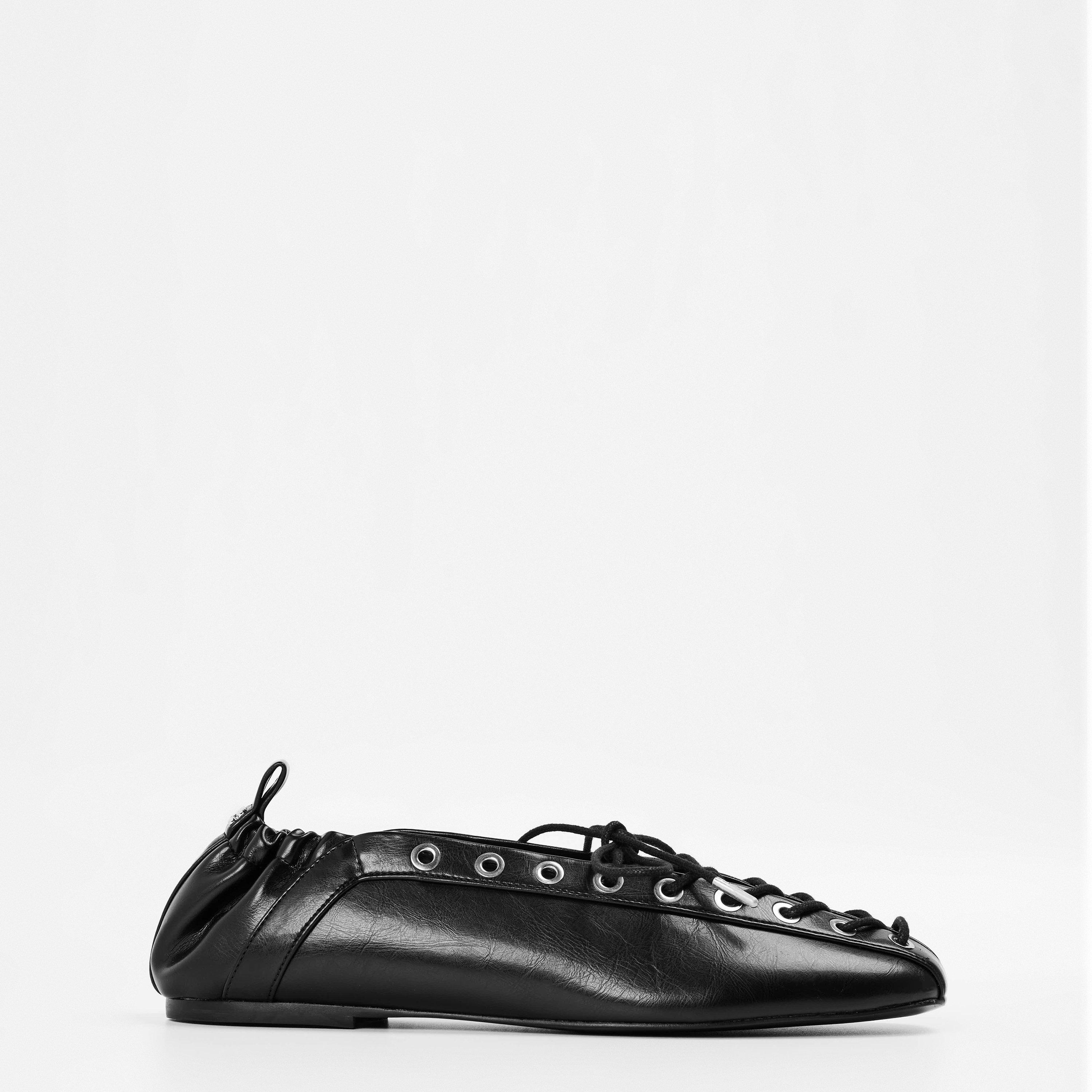 Ganni's Lace-Up Ballet Pumps have a sleek look and contemporary design, featuring delicate straps that wrap around the ankle for a secure, graceful shape. This ballerina shoe offers both style and comfort.