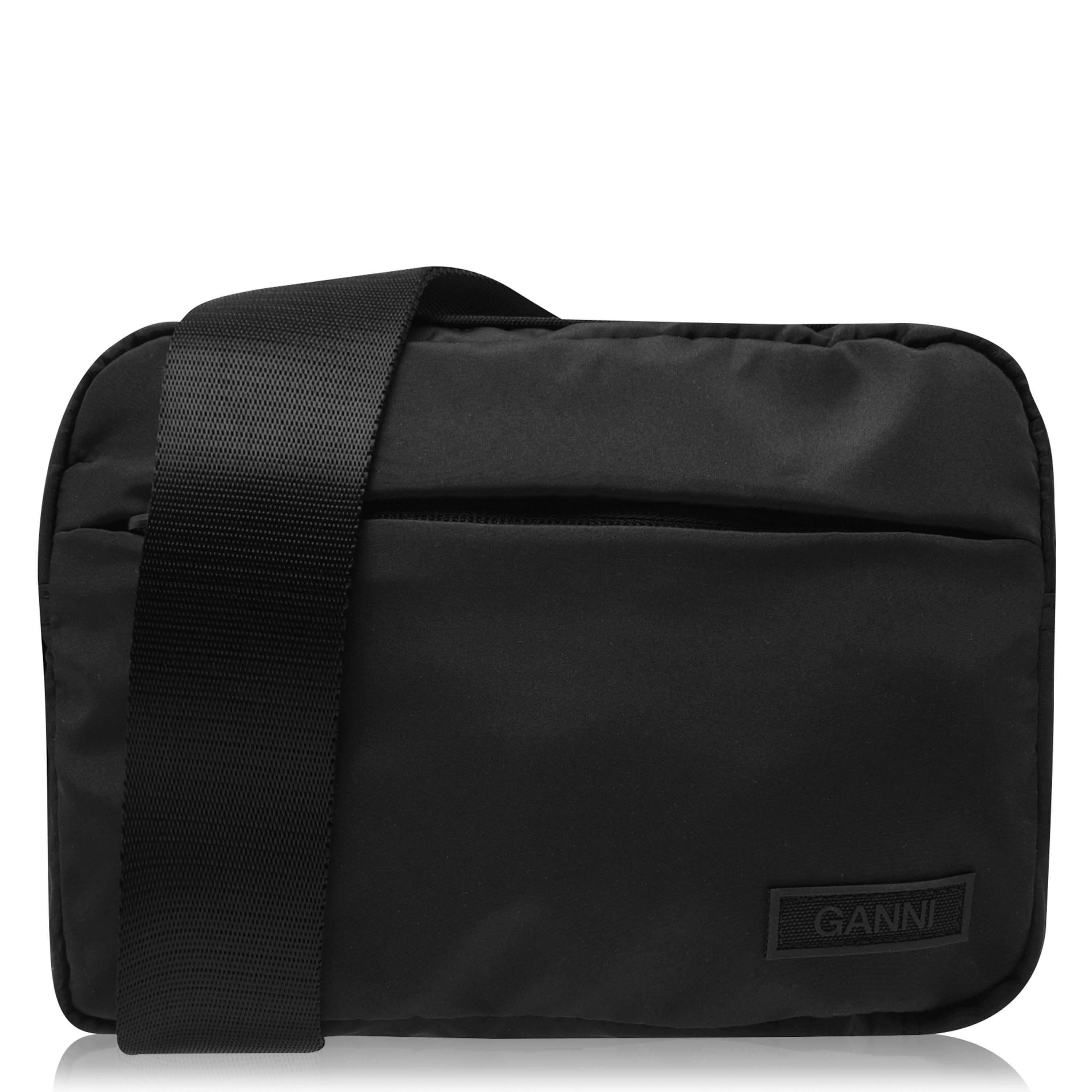 Modern functionality meets signature GANNI style in this tech fabric shoulder bag. Designed with practicality in mind, this versatile accessory features a streamlined silhouette with a spacious main compartment for daily essentials. The adjustable webbing strap offers customisable wear, while the branded patch detail adds a subtle designer touch to this minimalist piece.