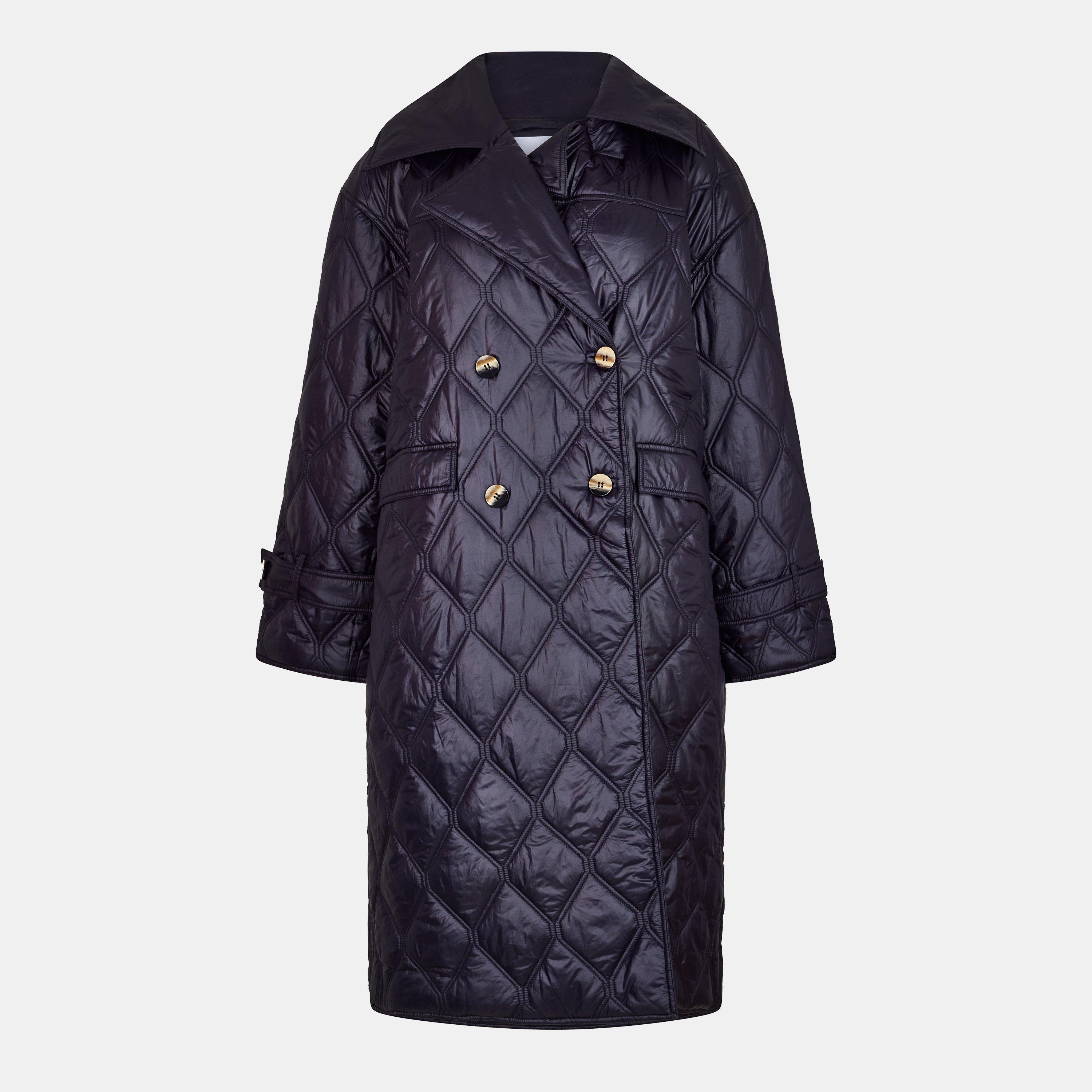 Ganni's Shiny Quilted Jacket brings definition through its glossy finish and structured quilting. The shape sits between classic outerwear and modern bold pieces.