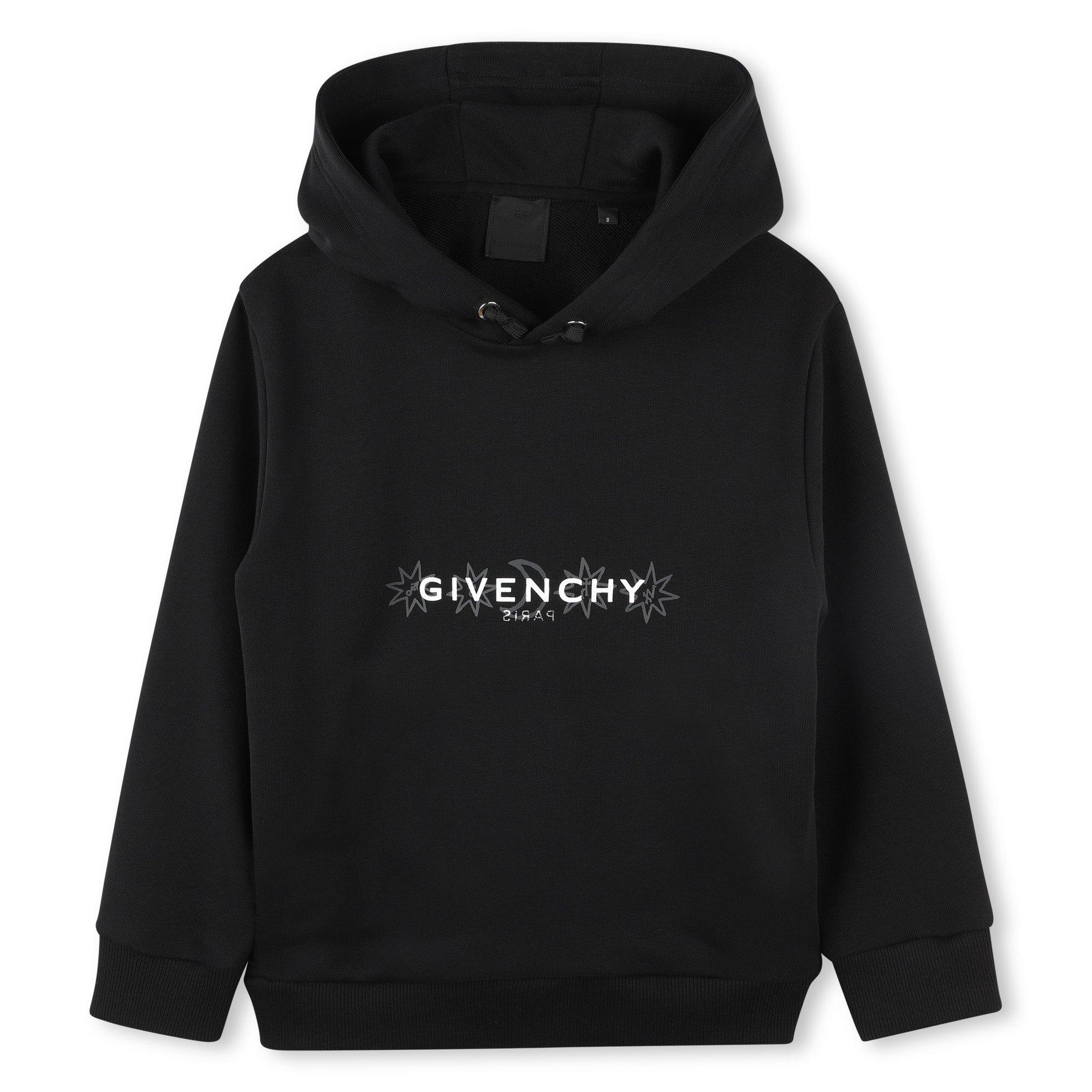 Founded in 1952, Givenchy brings Parisian flair to everyday essentials with the Juniors Logo Print Hoodie. Crafted for comfort, it features a loose hood with drawstring, long sleeves, ribbed cuffs and hem, and a bold graphic logo print on the back for standout style. Perfect for school days, weekend outings, or layering on cool afternoons.