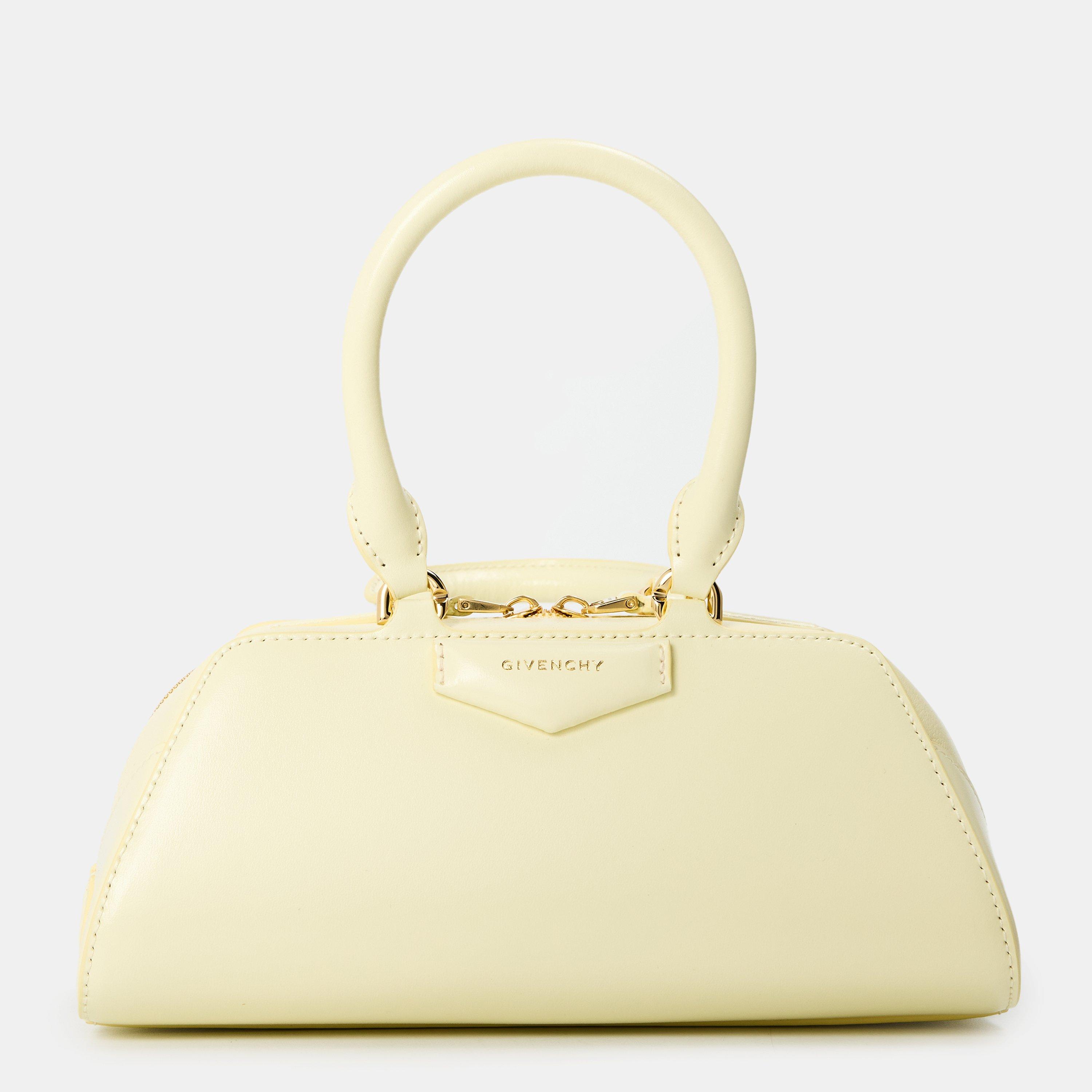 Stride confidently with the Mini Antigona East-West Bag by Givenchy, a fashion house celebrated for its luxury craftsmanship and Parisian chic. Designed with a pentagonal patch and gold-embossed logo creating a signature finish. From polished daywear to elegant evenings, this top handle bag is the ultimate accessory.