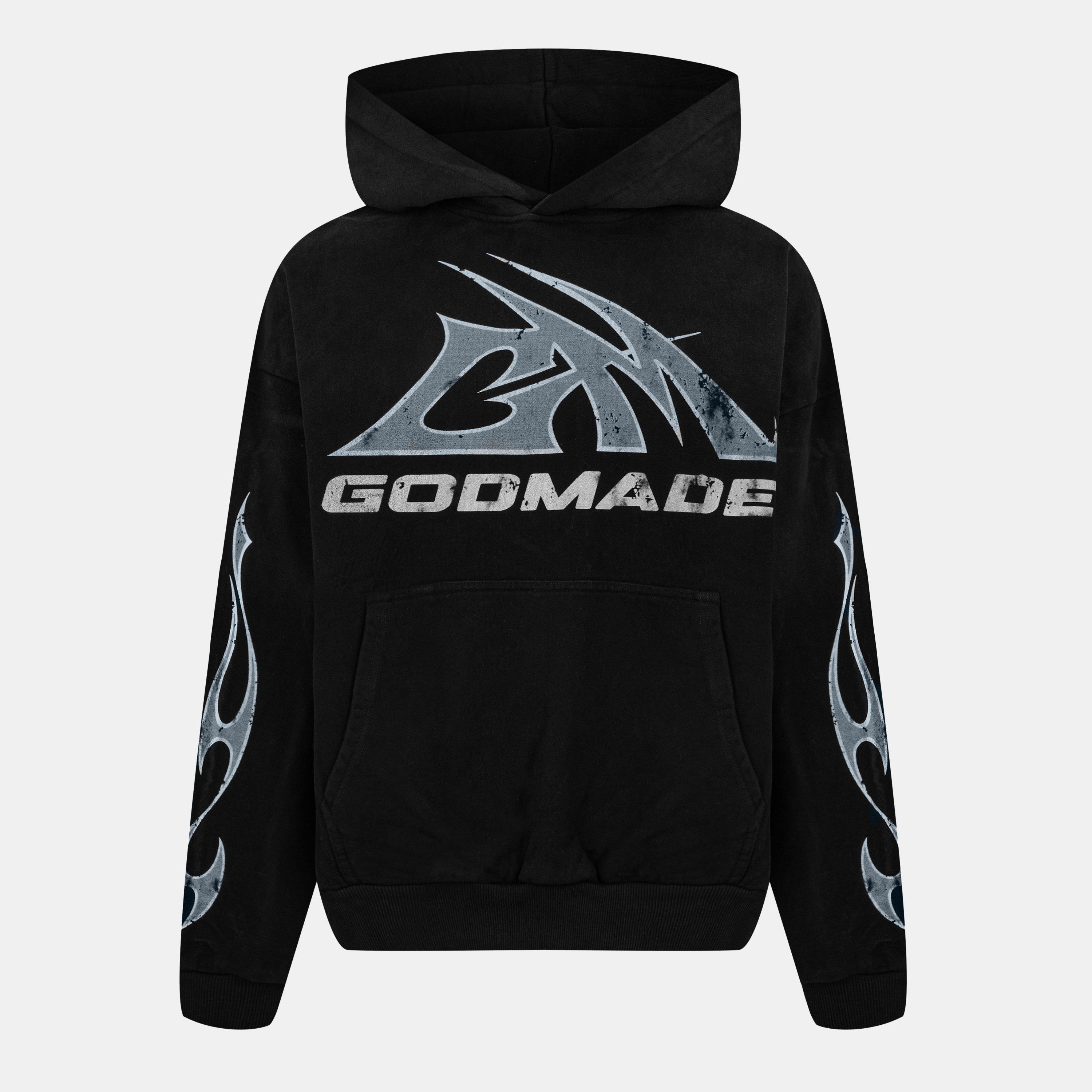 Revitalise your everyday wardrobe with this eye-catching GM Logo Hoodie from God Made. Expertly crafted in premium loopback jersey fleece and cut for a slightly oversized fit, this hooded sweatshirt for men is perfect for transseasonal months, whether lounging at home after a busy week, running errands, or going on a casual outing with your family or friends.