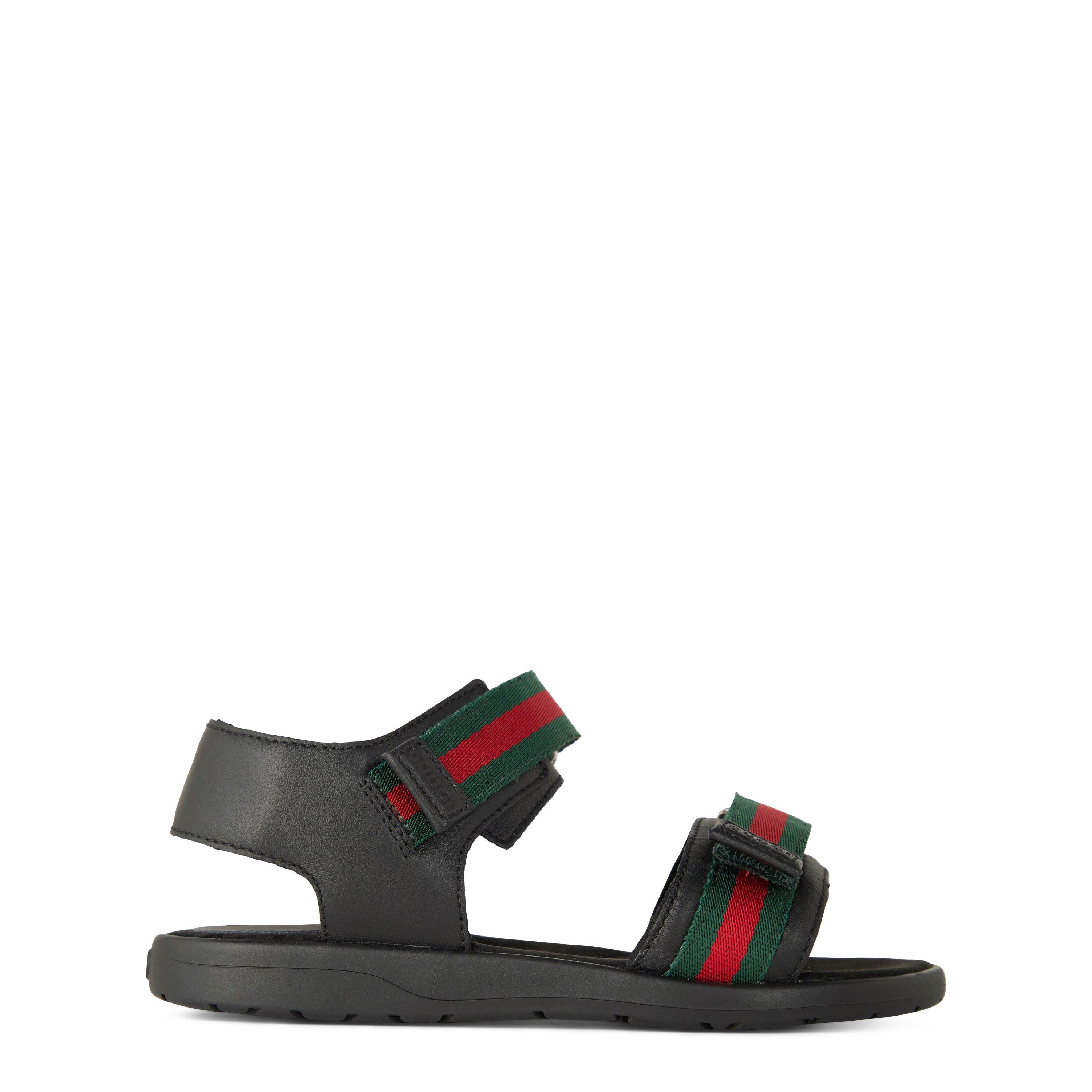 Gucci's Webbed Leather Sandals for youth and children offer premium summer footwear that combines comfort with iconic style. The designer sandals showcase the brand's signature red and green web stripes alongside leather craftsmanship. Perfect for beach outings or casual days, these versatile footwear pieces deliver both practicality and luxury.