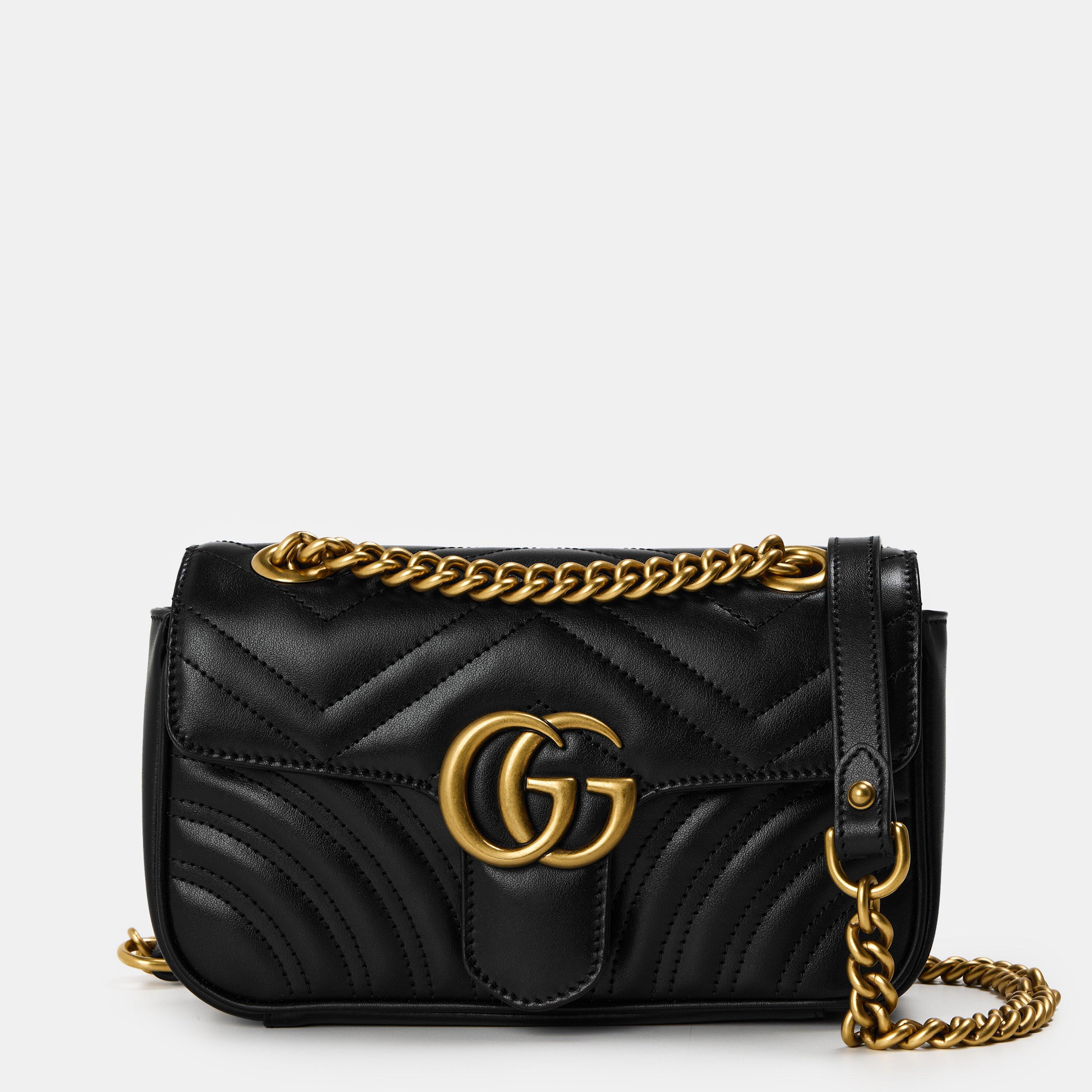 Elevate your style game with Gucci's GG Marmont Matellassé Mini Bag, from brunch dates to evening soirées, this bag effortlessly transitions between casual chic and sophisticated elegance. The antique gold hardware and the GG embellishment at the front over a matelassé chevron leather, featuring a heart detail, add romance to this edgy yet classic piece.