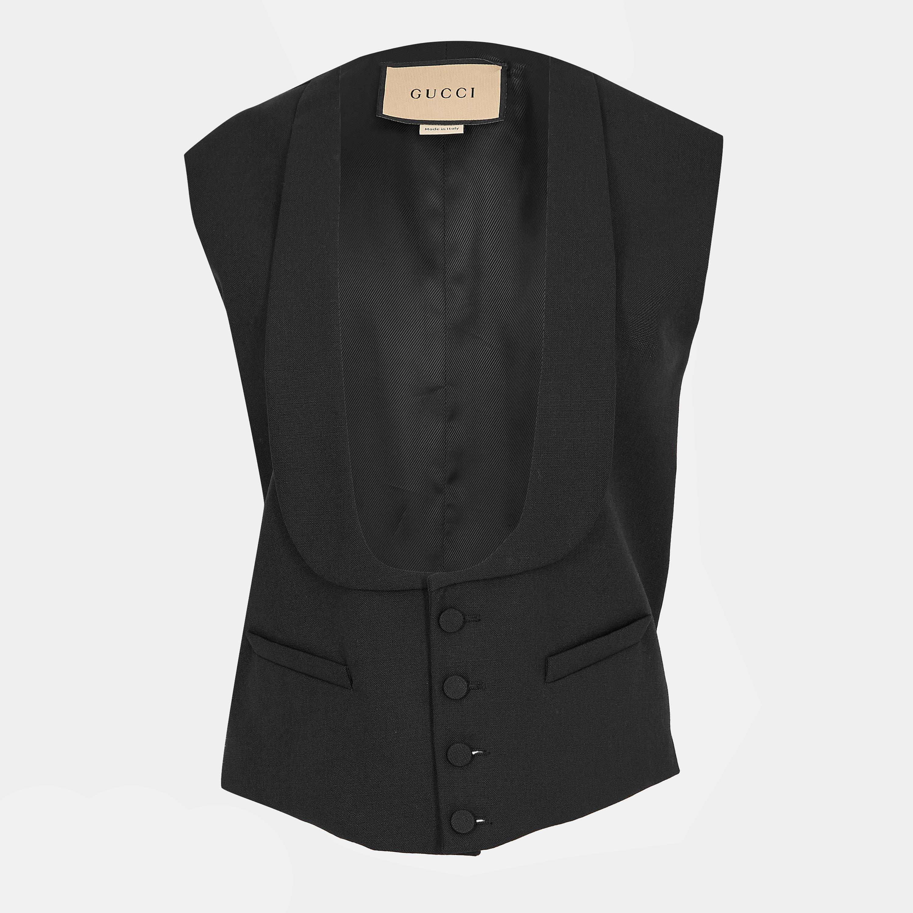 The Gucci Tailored Fit Waistcoat features a structured shape for traditional dress wear. Button-through front provides classic fastening.
