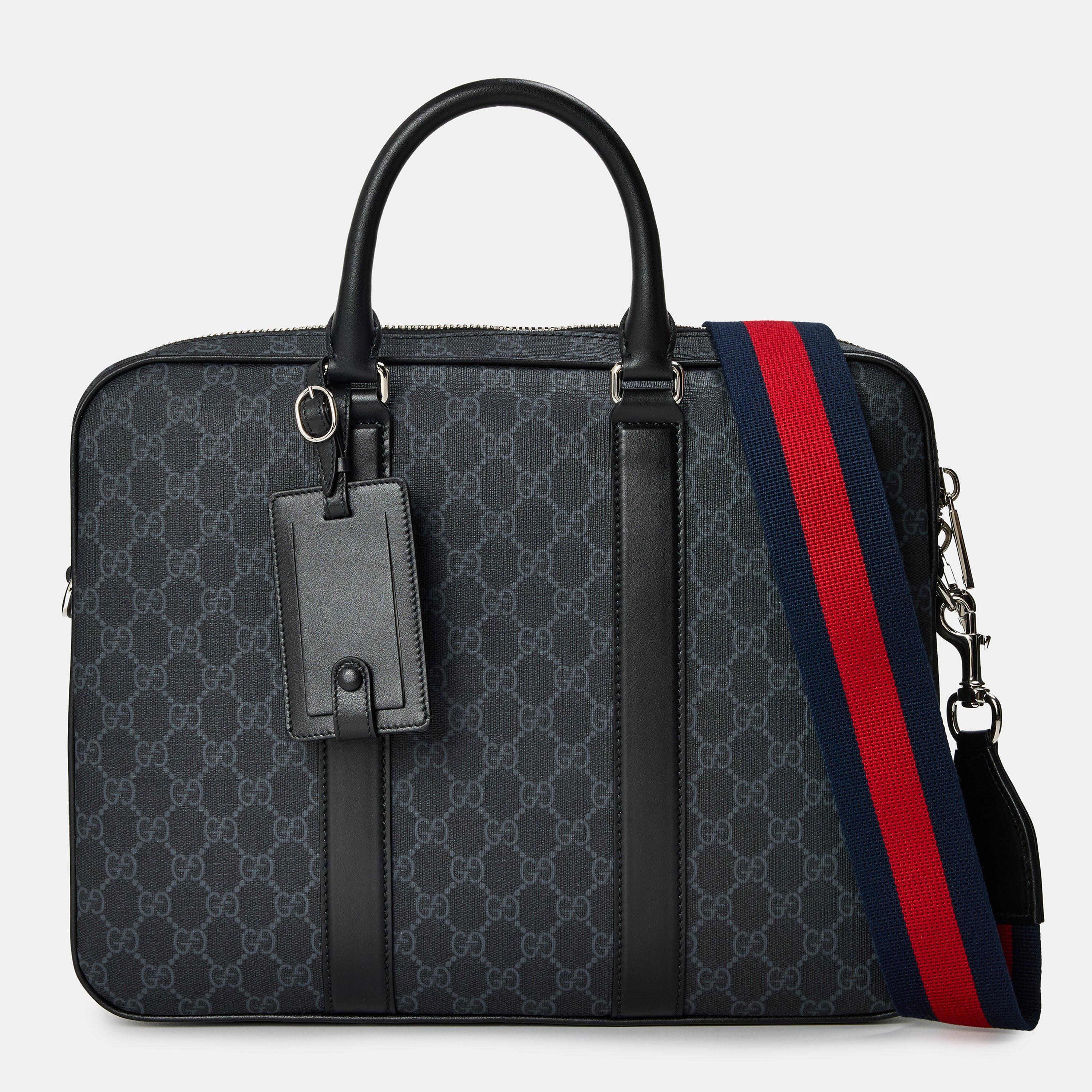 Gucci Men's Structured Business Briefcase offers a smart design and practical functionality as a designer accessory. The structured shape features Gucci detailing, while providing ample organisation for professional essentials including laptop storage in a durable build suited for daily executive work demands and office travel.
