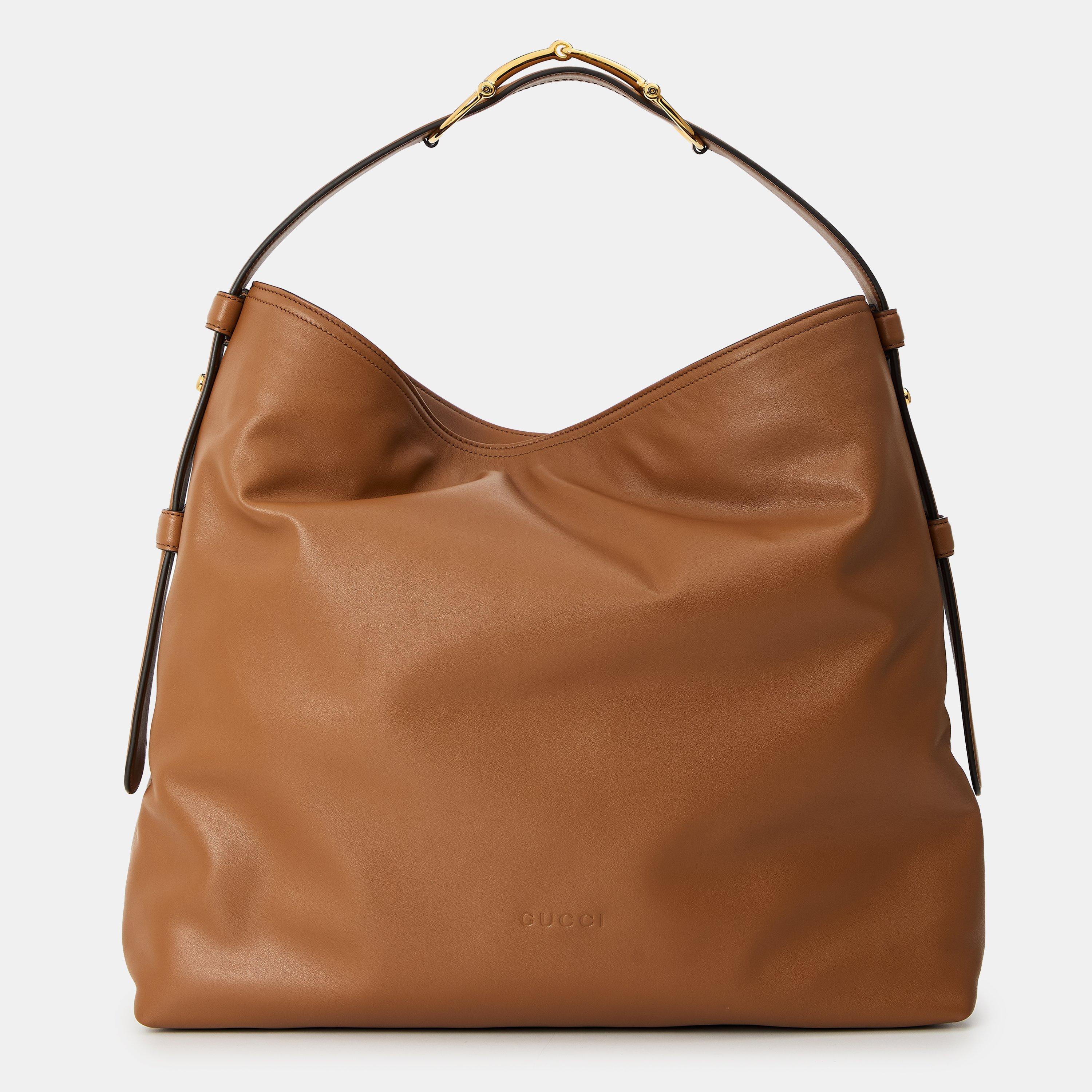 The Maxi Hobo Handbag has a spacious design, featuring a curved shape that drapes elegantly against the body when carried.
