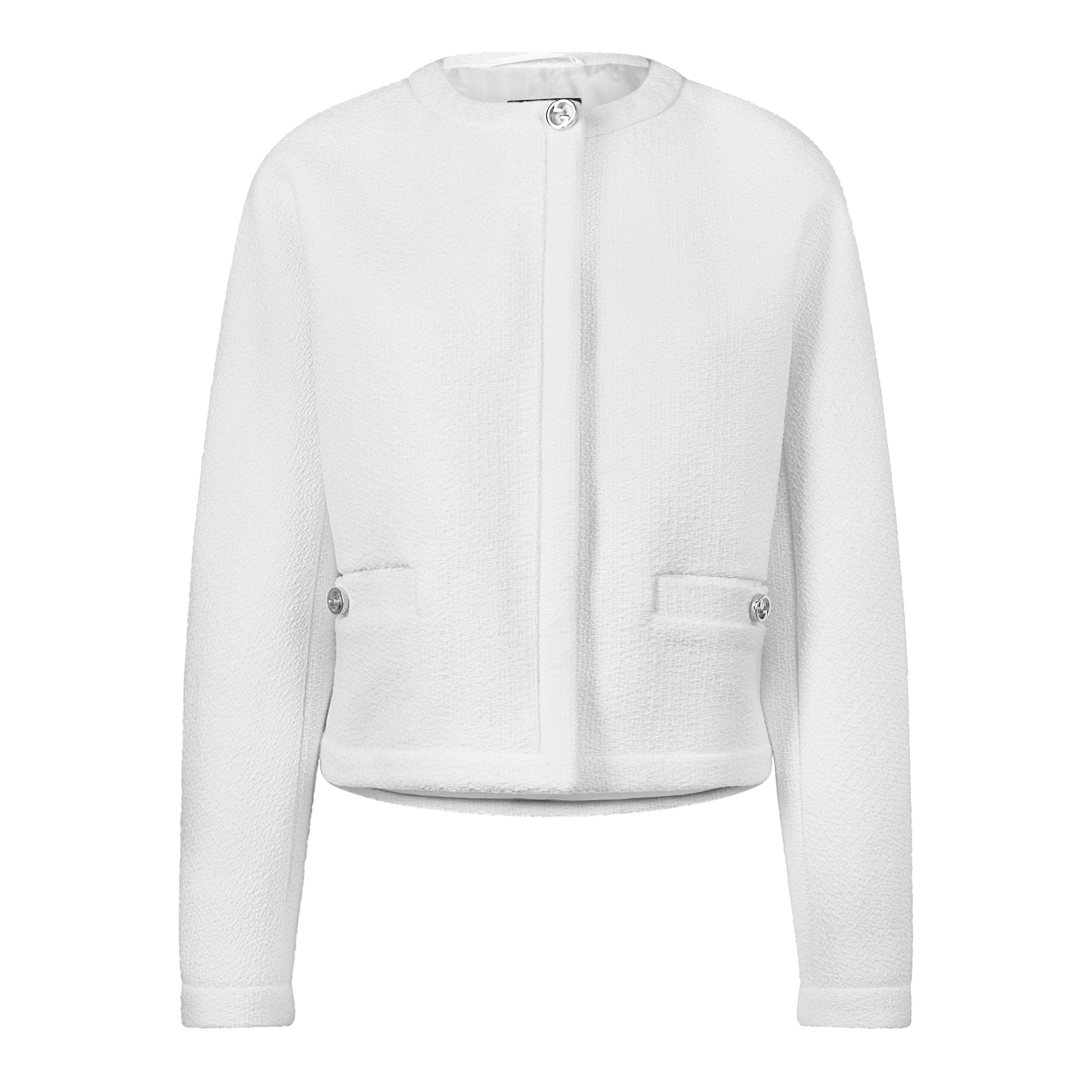 Gucci Women's Wool Bouclv© Collarless Long Sleeve Overcoat