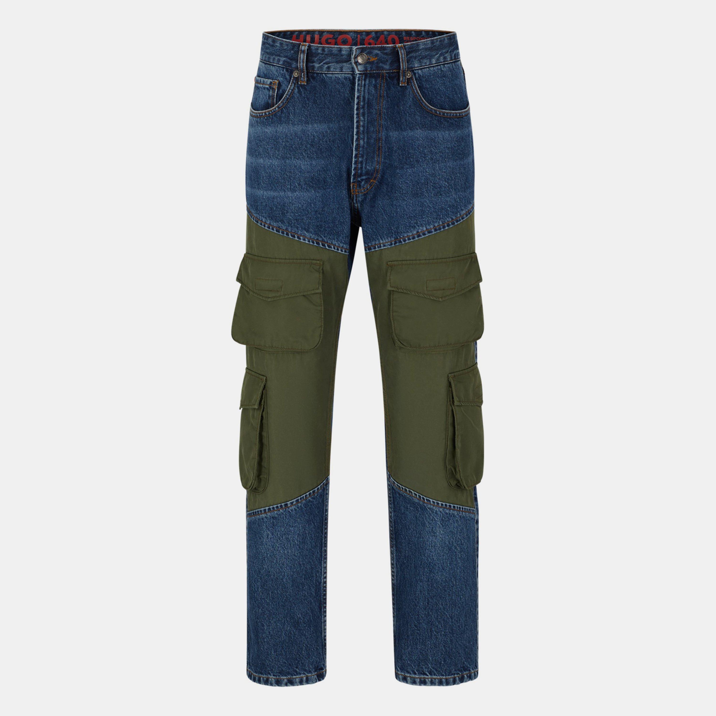 Combining streetwear with a beloved wardrobe staple these Hybrid regular-fit jeans from Hugo are perfect for your weekend wardrobe. Expertly crafted from a sumptuous 100% cotton, in a denim composition, for a luxuriously lightweight appeal that is both soft and durable making for long-lasting wear while enhancing your comfort with its breathable appeal and elevating your off-duty attire with its eye-catching edge. Cut to a regular rise with a straight fit these jeans create a contemporary silhouette with their six, contrasting colour cargo pockets, whilst the 5 traditional pocket design makes for a familiar edge, fusing fashion with function, allowing you o keep your everyday essentials at hand and organised for convenient use.