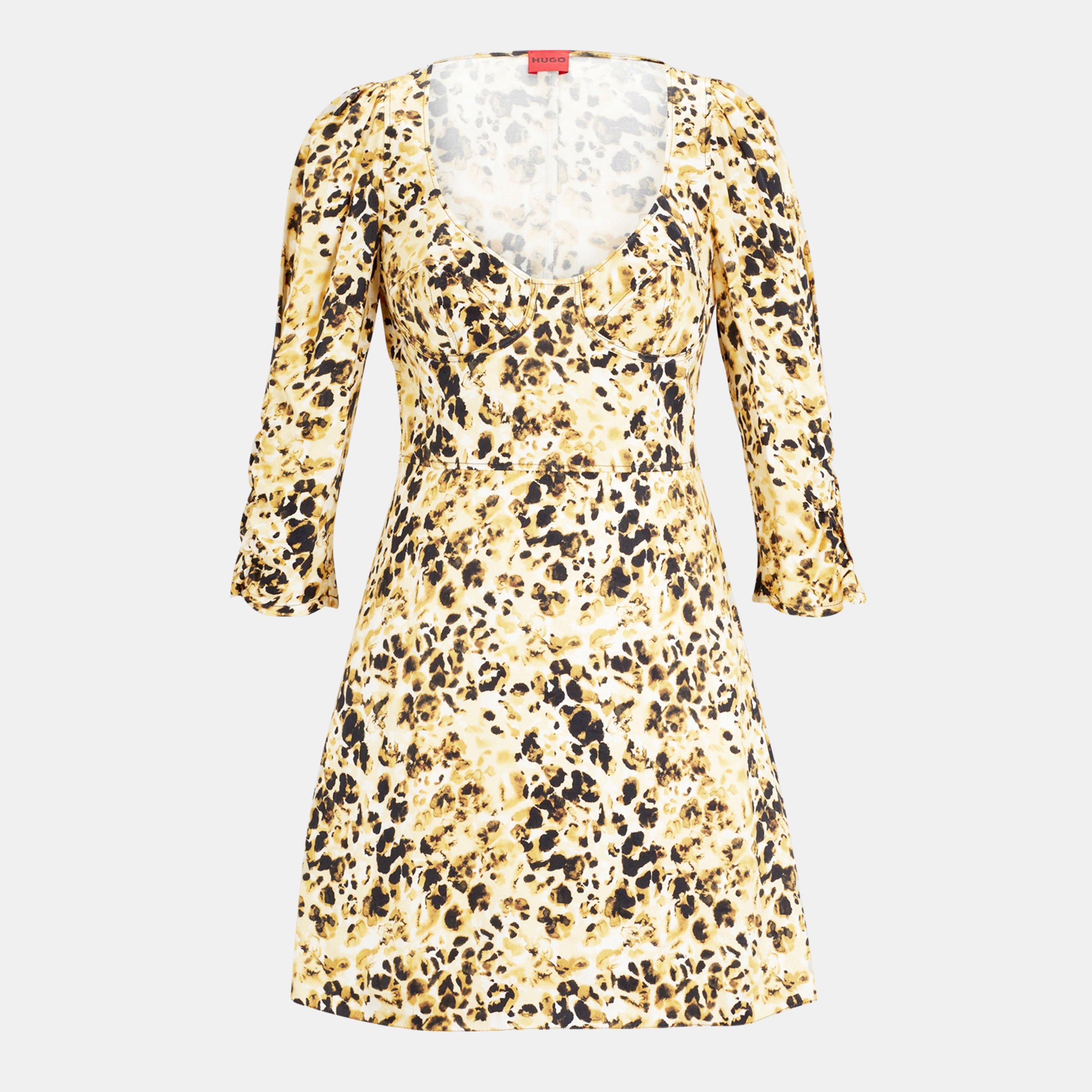 Designed to transition from day to evening seamlessly, the Hugo Kindra Corset Dress is a must-have addition to any refined wardrobe. With a concealed zip closure ensuring a seamless silhouette, this mini dress offers both style and ease. Whether you're off to a garden party or drinks with friends, this skater dress embodies refined sophistication for any occasion.