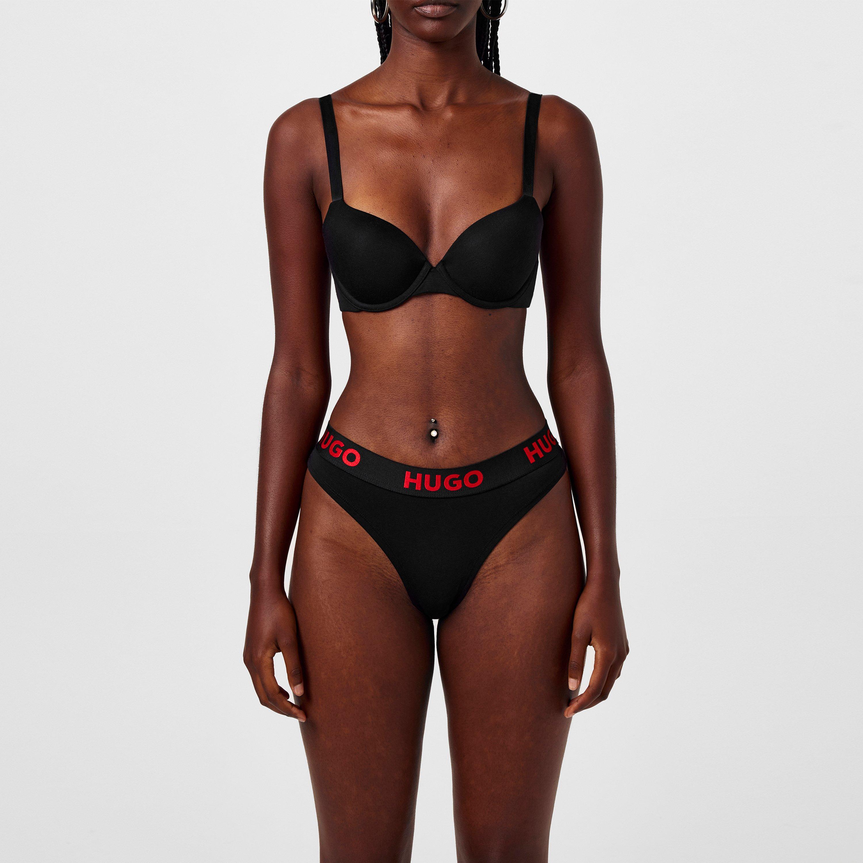 Refresh your underwear collection with the Hugo Stretch Cotton Thong. Crafted with stretch cotton for flexible comfort, the thong features a regular-rise wide waistband adorned with flat lock stitching for all day comfort and the sporty Hugo lettering for instant brand recognition.