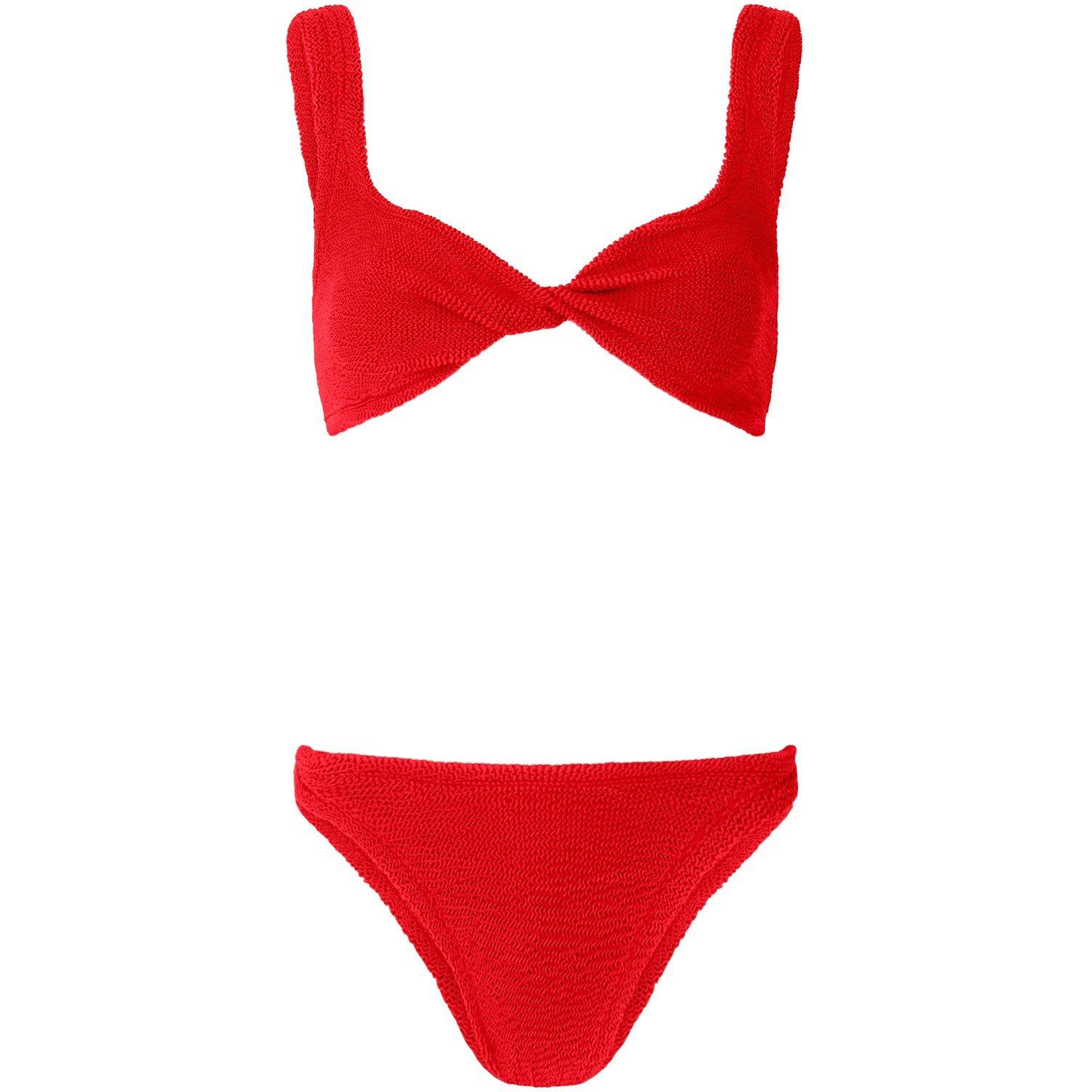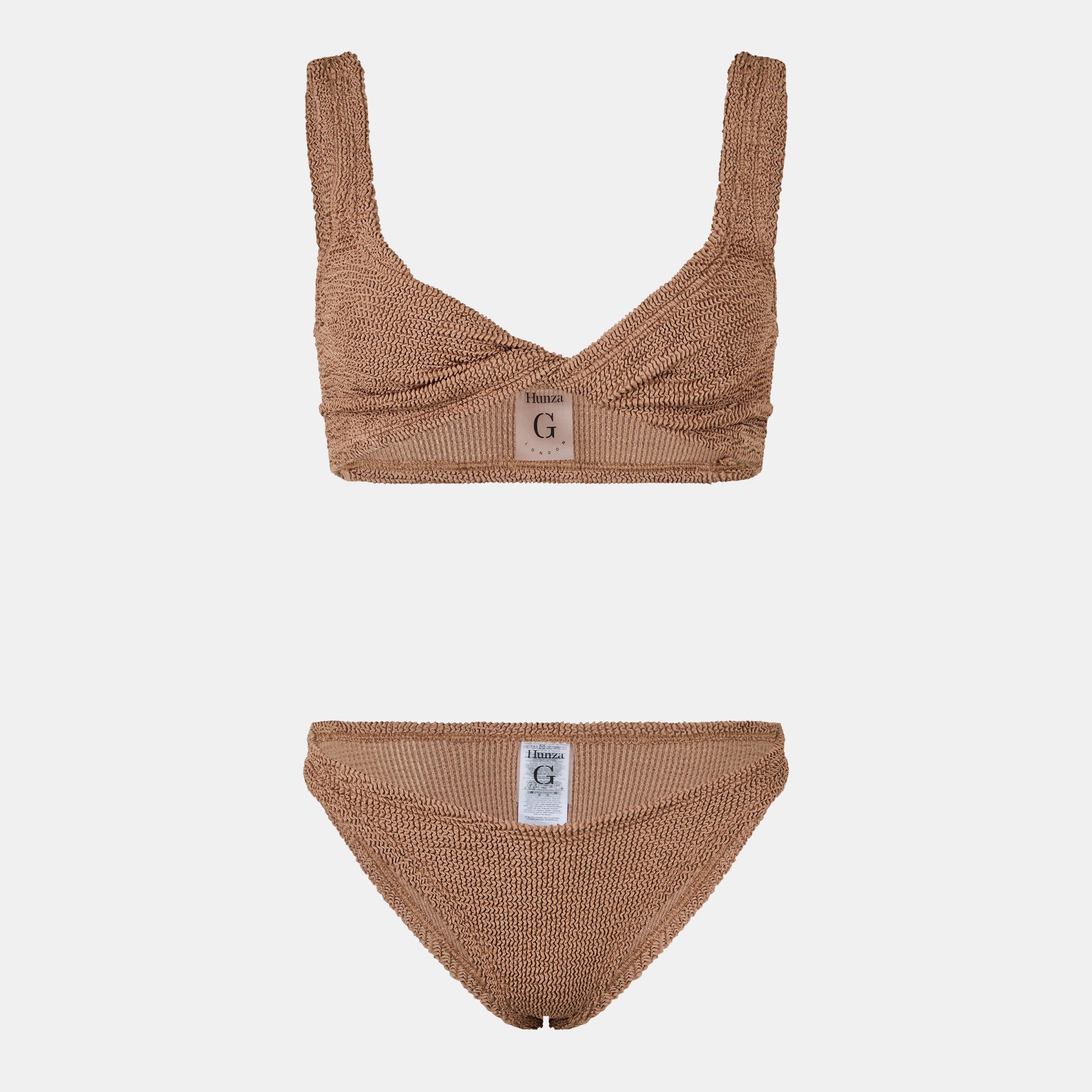 Hunza G’s Juno Twist Detail Bikini effortlessly blends bold style with refined elegance. The plunge neckline and sculpting twist detail create a striking look, while the bottoms provide fuller coverage for a modest yet flattering fit. Crafted from textured fabric, this bikini is perfect for a luxurious beach escape or a fashionable poolside brunch, offering both comfort and sophistication.