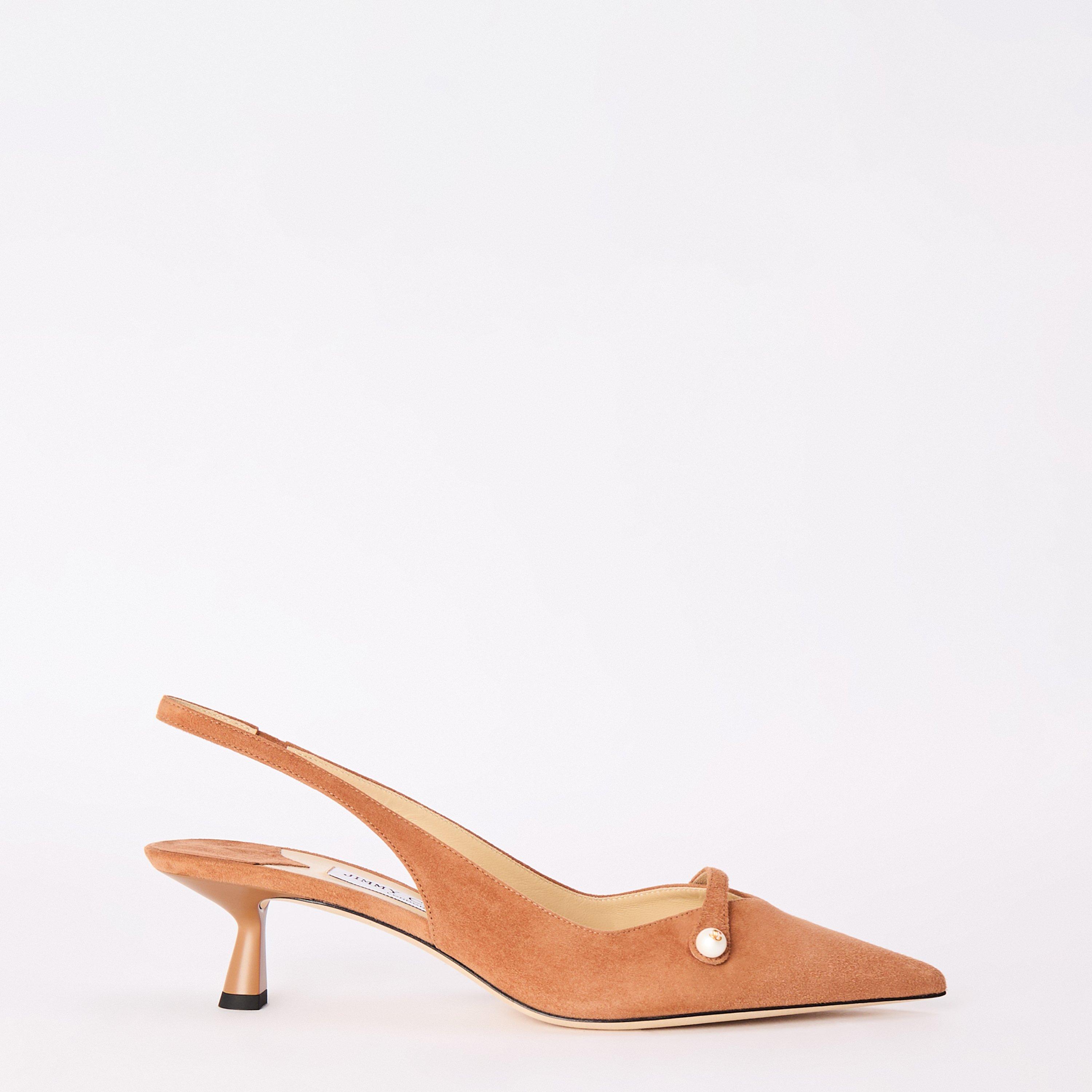 The Amita 45 Slingback from designer Jimmy Choo balances classic design with a practical heel height, ideal for extended wear. This chic footwear features a slingback design that delivers both fashion impact and secure positioning.