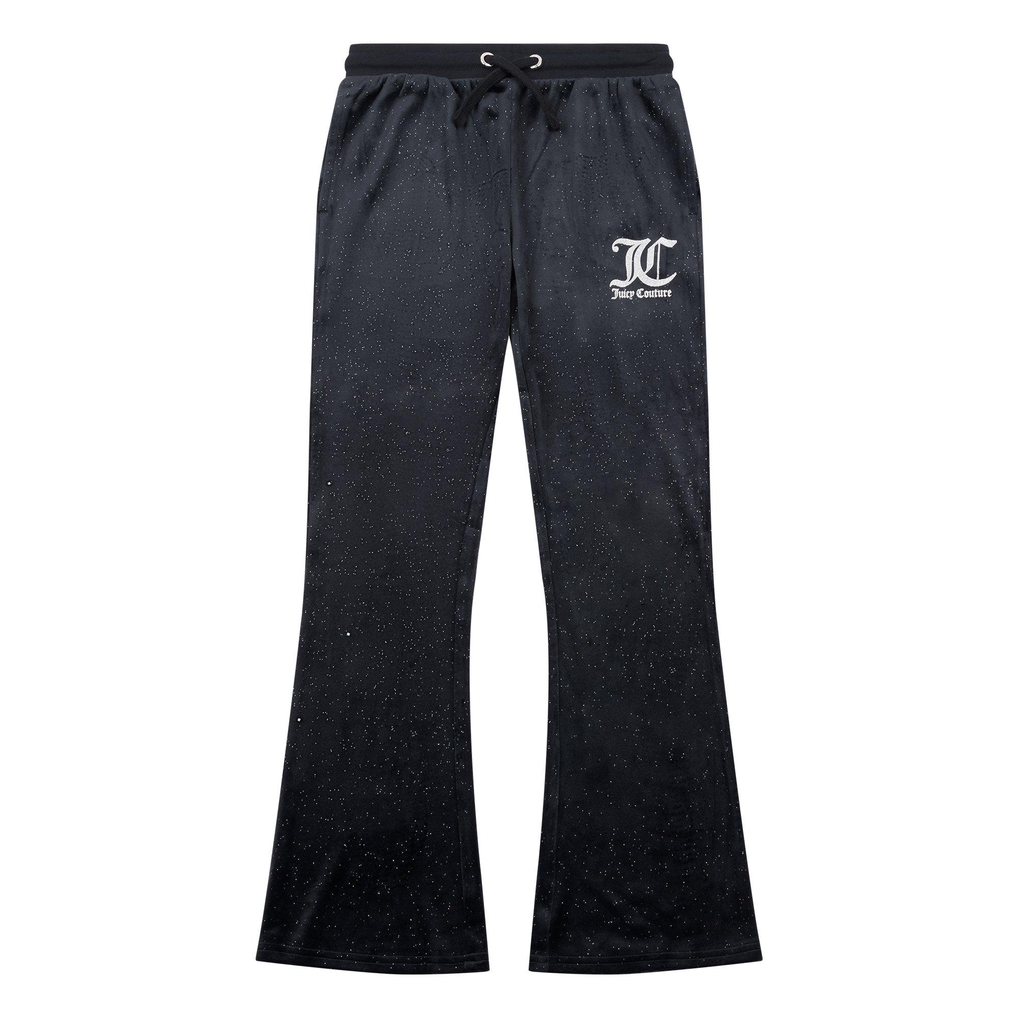 Inspired by athleisure wear aesthetics, the Juicy Couture Glitter Velour Flared Joggers adds a sparkling touch to your little one's casual collection. Crafted from a super-soft velour fabrication, this flared silhouette is defined with an all-over glitter thread adding a glistening touch while the matching thread to the Juicy Couture logo adds an eye-catching designer stamp. Secured with a drawstring fastening to the waistband, this pair can be worn with a track jacket and sneakers for a casual look.