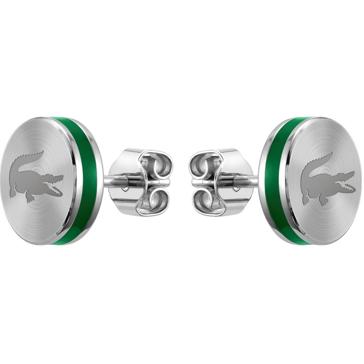 Composed of a bracelet, necklace, hoop, stud earrings, and a ring, the Lacoste Baseline collection adds a distinguished touch to any look. Each piece is etched with a signature crocodile and detailed with enamel piping in Lacoste green, emphasizing the brand's iconic DNA. A large croc on one side of the necklace pendant contrasts with a discreet logo on the reverse for a choice of looks, while the bracelet features a curved plate for an elegant finish.