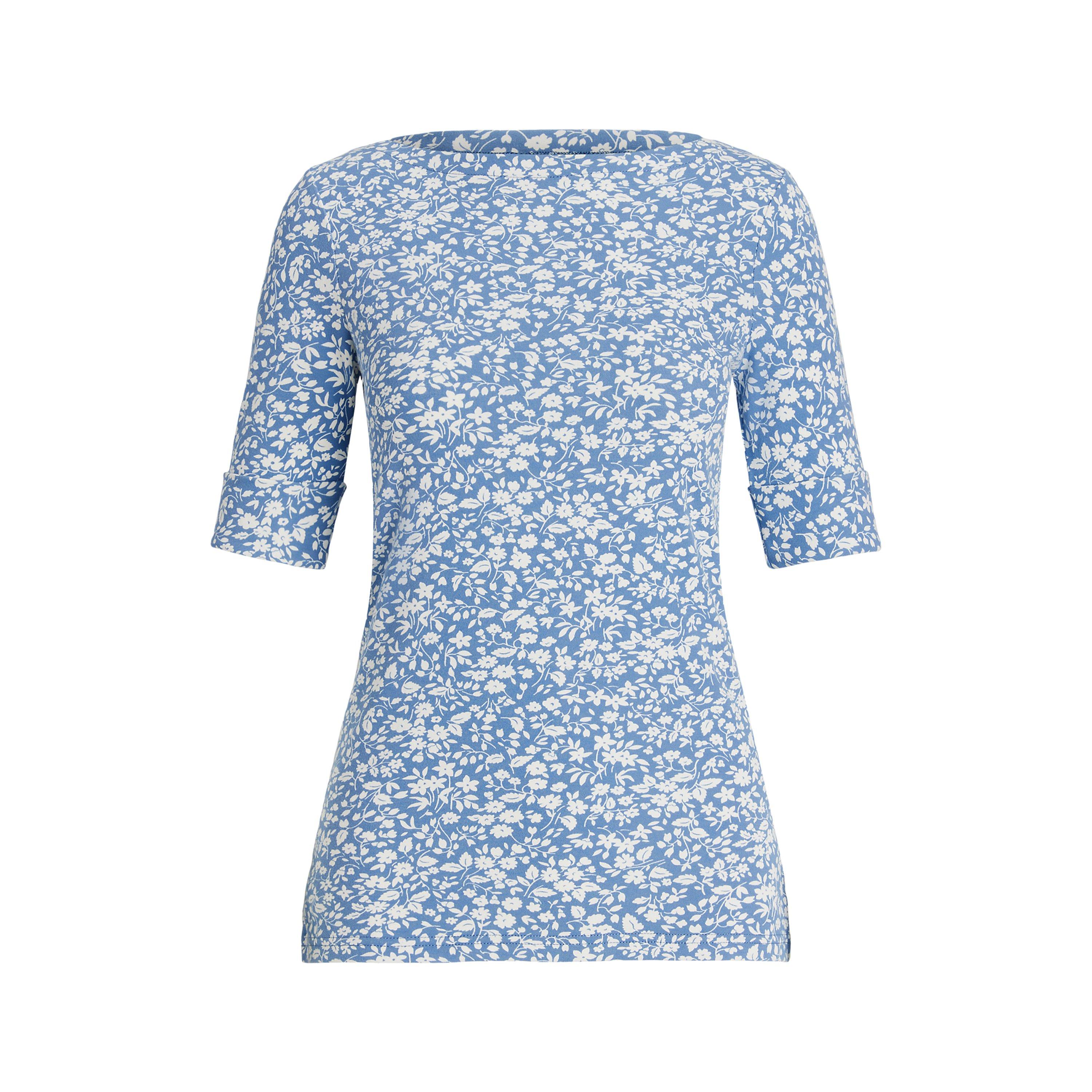 Indulge in the epitome of accessible luxury with the Lauren by Ralph Lauren Judy T-Shirt. Embodying the brand's rich heritage and commitment to impeccable craftsmanship, this top effortlessly blends style and comfort. The boatneck and slim fit silhouette exude sophistication, while the half-length sleeves with fold-over cuffs add a touch of refinement. The embroidered monogram logo at the hem reflects the brand's attention to detail and adds a subtle yet elegant touch. Versatile and timeless, this women's essential can be used as a base layer or paired with denim for a chic and effortless look. Crafted with a seamless stitch, this lightweight top offers a soft and breathable experience, making it perfect for any season, occasion, or collaboration with your personal style. 94% cotton 6% elastane. Machine washable, follow care instructions.