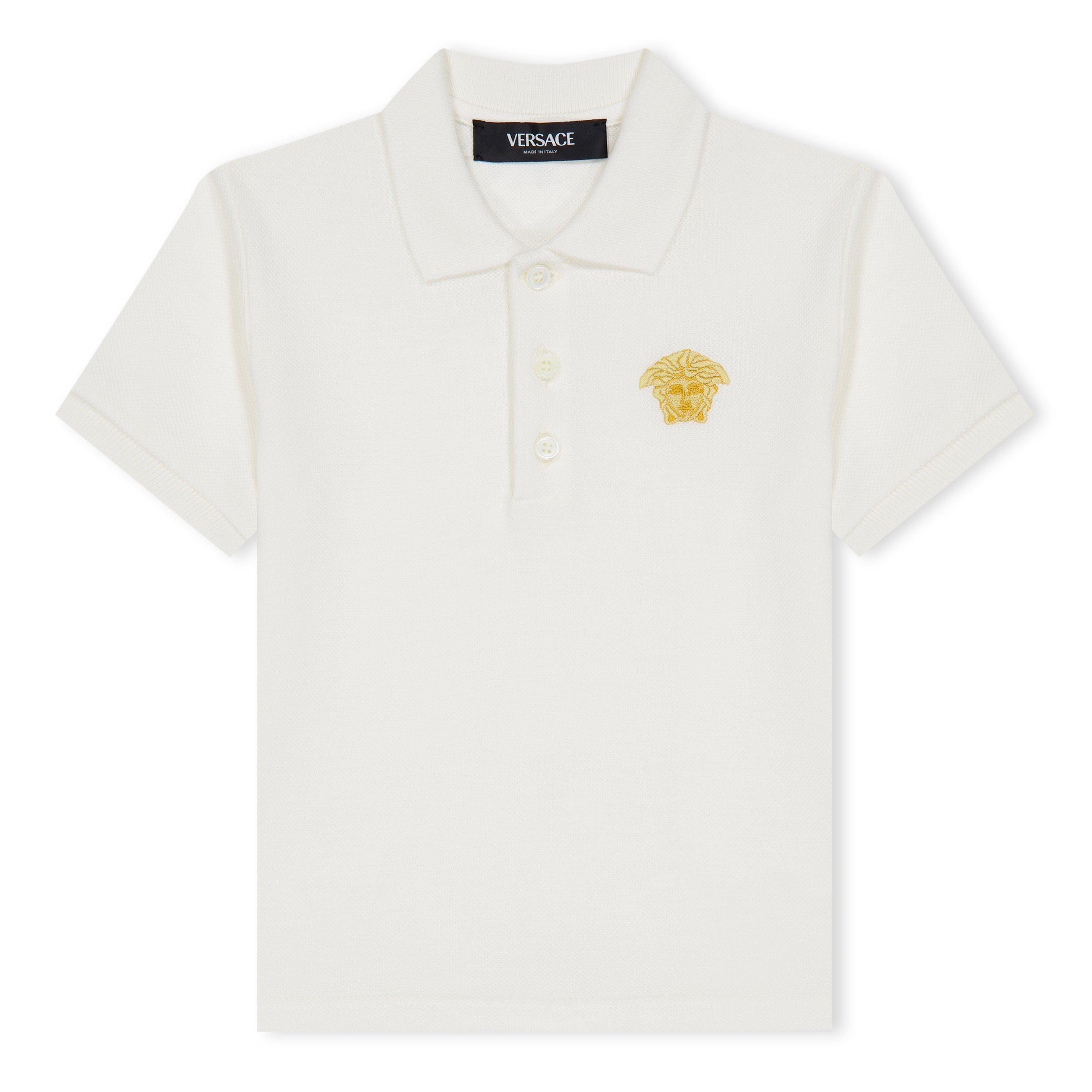 Versace's Kids' Logo Short-Sleeve Polo Shirt delivers classic style with a high-end edge for children. Clean lines and branding create a smart yet playful piece suited for children.