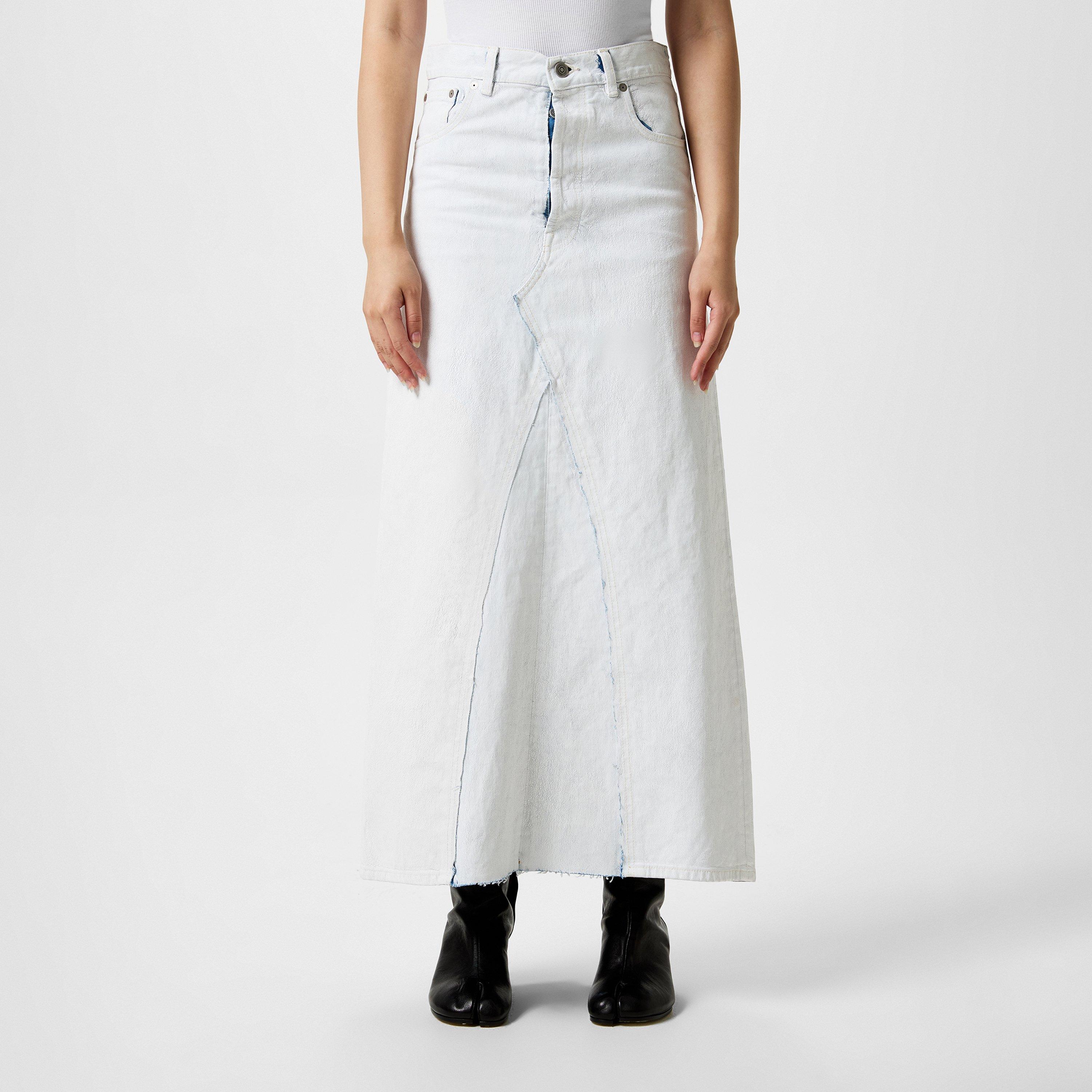Step into the spotlight with Maison Margiela's Painted Denim Skirt, a brand known for its avant-garde pieces. Adorned with an eye-catching all-over paint design making a statement wherever you go. From casual bunches to outings with friends, this maxi skirt adds a touch of sophistication to any ensemble.