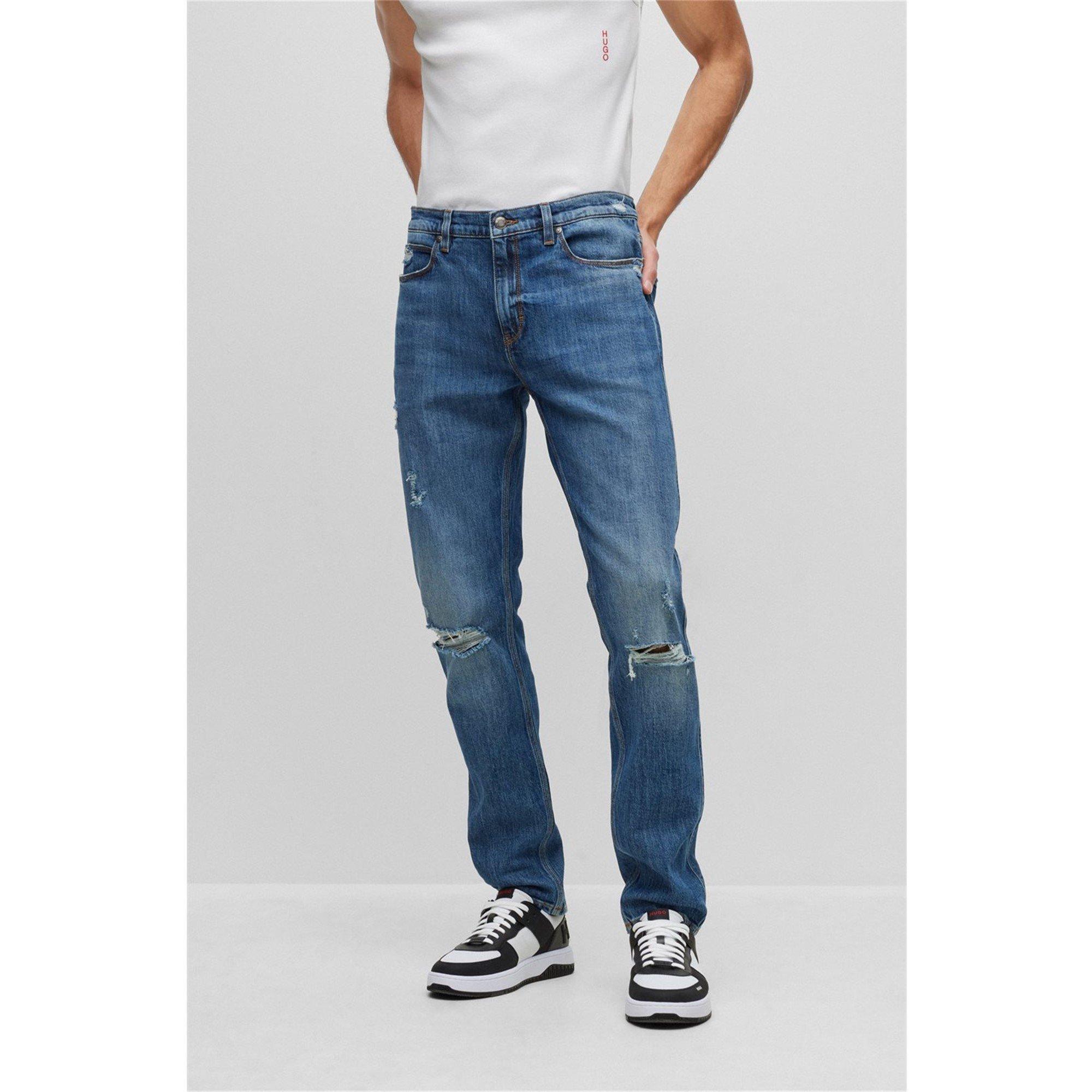Classic five-pocket styling with signature HUGO detailing adds authentic character to these jeans.