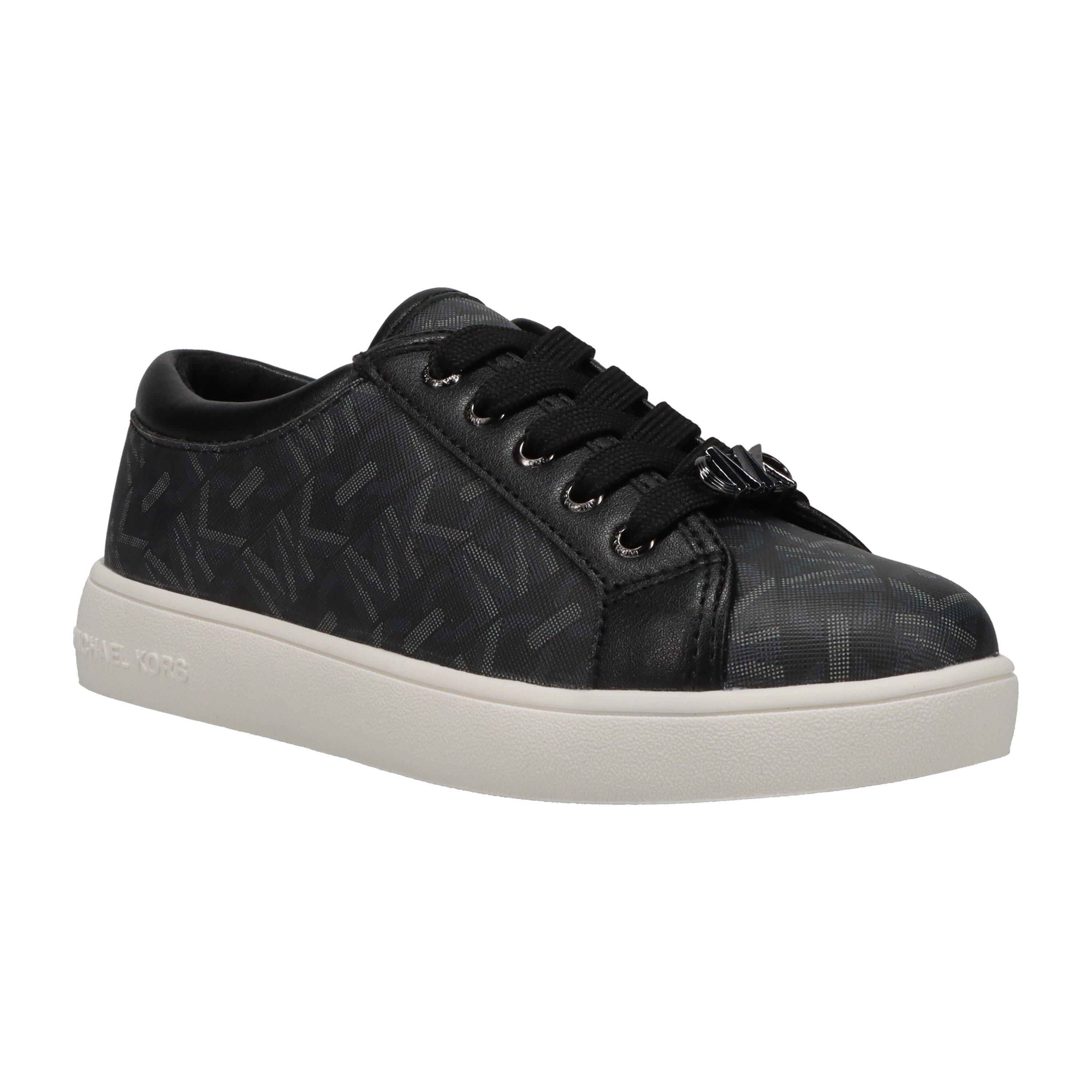 Step your little one into the spotlight with Michael Kors Jem Empire Sneakers Juniors. These sneakers redefine cool whether they're hitting family gatherings or ruling the weekend hangouts. Sporting the iconic MK logo jacquard print throughout, add luxury to their everyday ensembles.