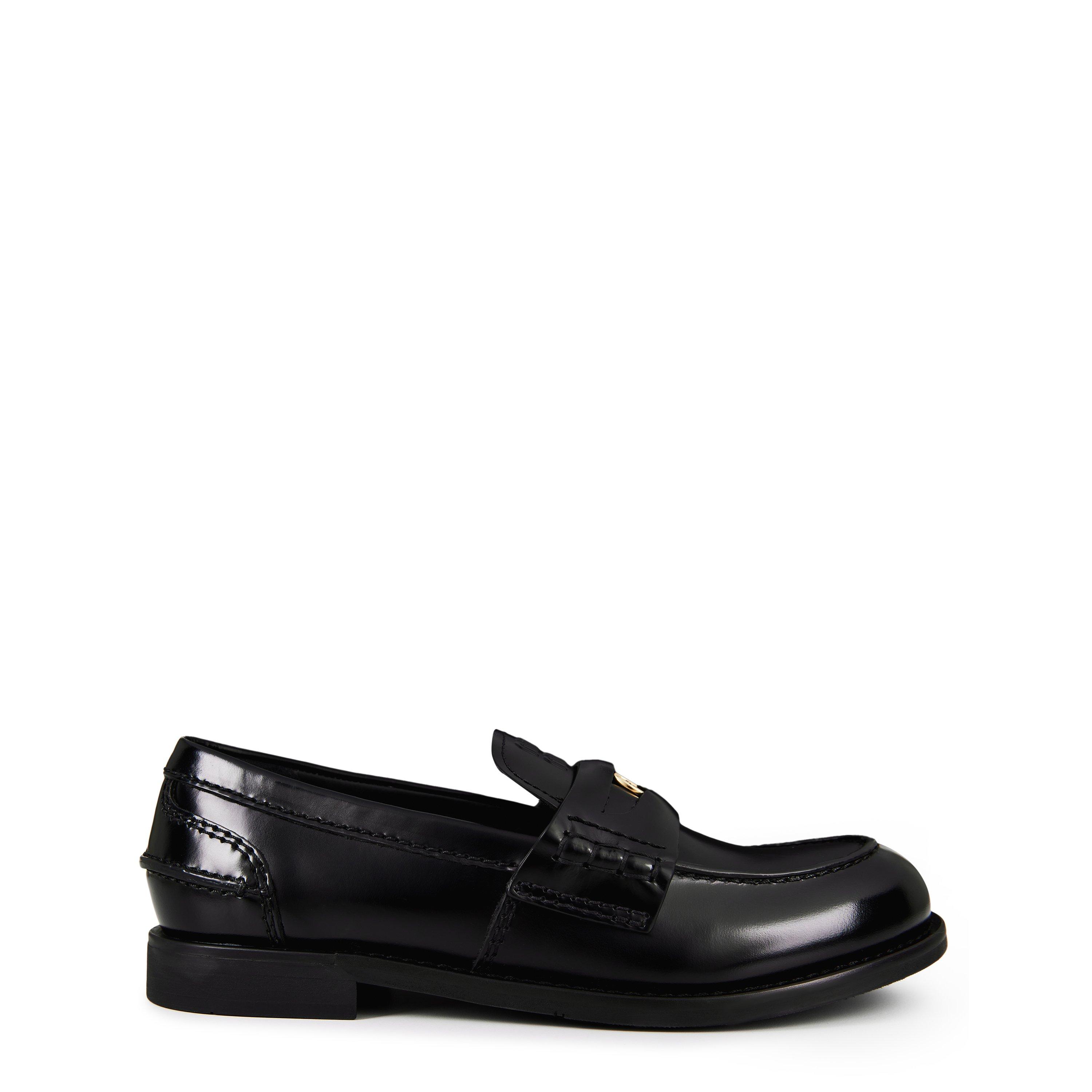 Presenting the Miu Miu Leather Penny Loafers, a timeless style which takes inspiration from the classic American college student uniform. Reimagined in a bolder version, these loafers pay homage to tradition while adding a modern flair. The duo-colour vamp commands attention with its leather strap and exquisite metal ornament, a nod to the iconic Penny which students used to place in their shoes, giving birth to the beloved name.