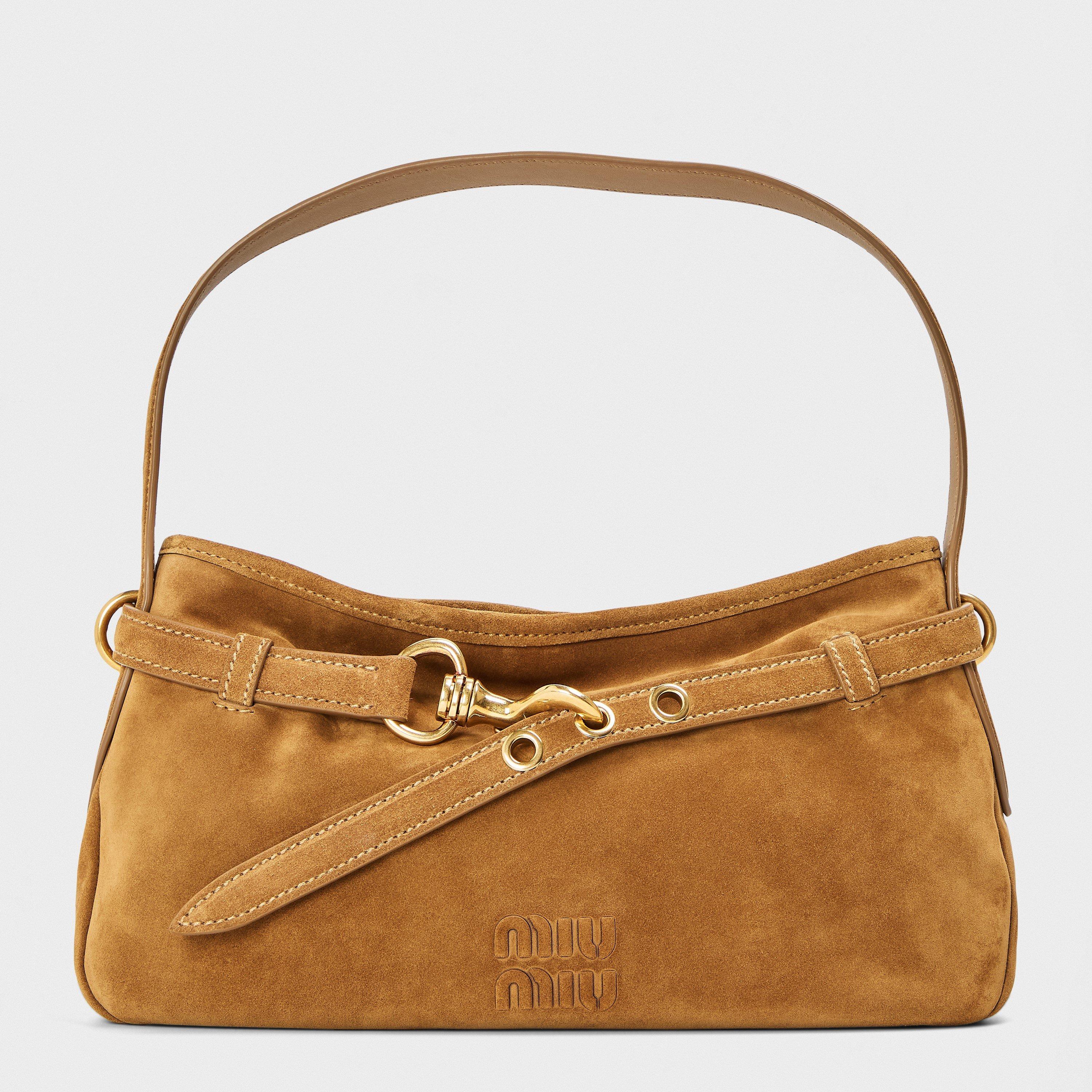 Miu Miu's Aventure Shoulder Bag offers a chic designer handbag suitable for everyday and casual wear. The design features well-proportioned dimensions and compartments, creating an adaptable accessory.