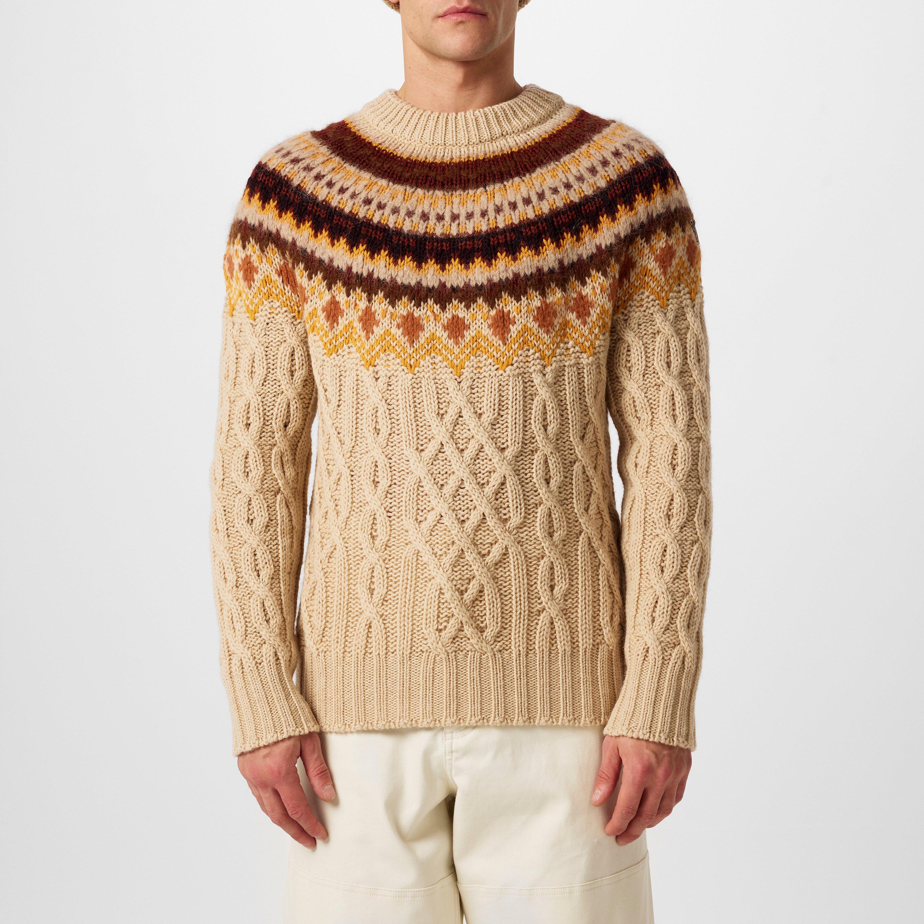 Men's Patterned Jacquard Wool Crew Neck Jumper
