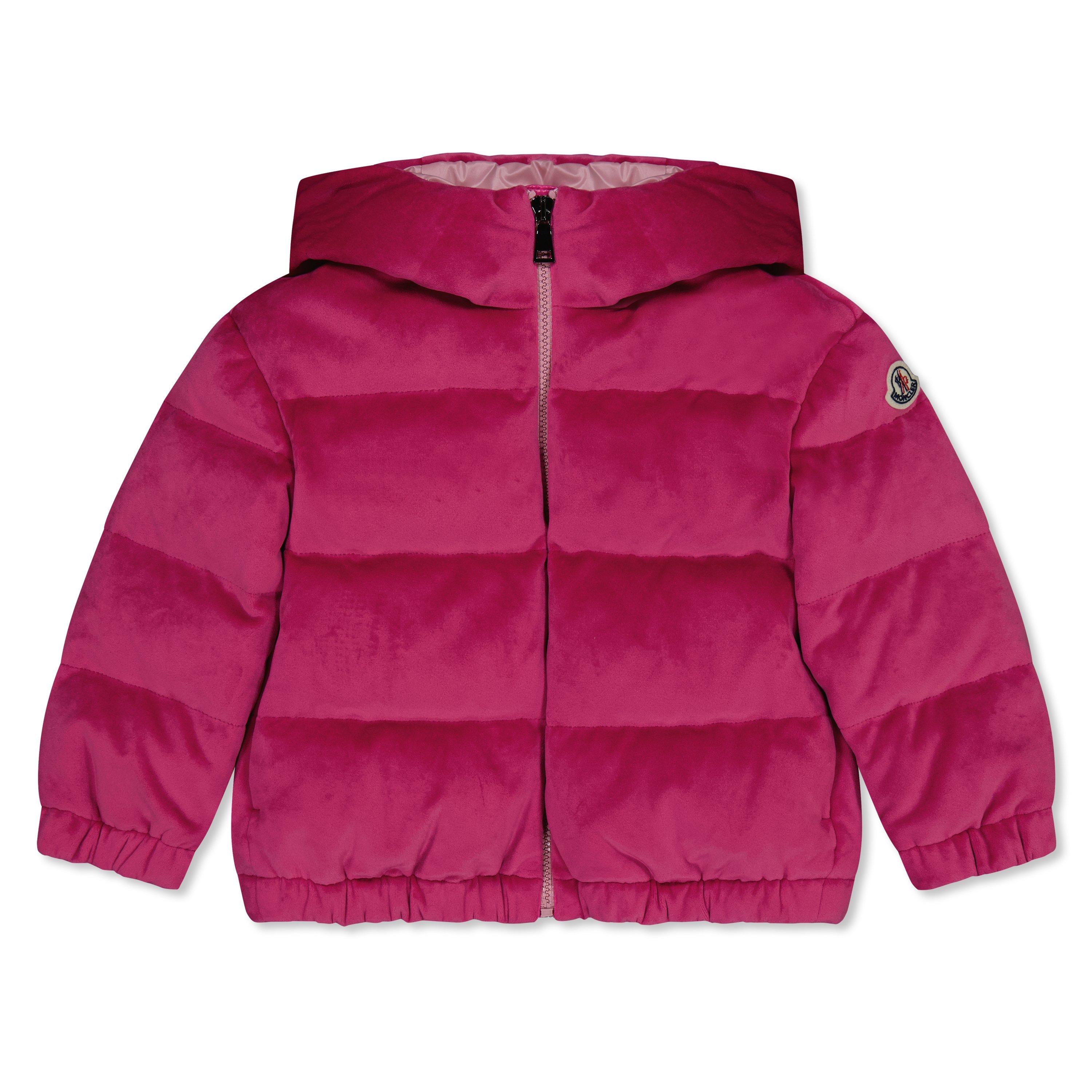 The Moncler Kids' Daos Jacket delivers winter warmth in a compact shape. With a velvety exterior, this short puffer design offers both practical warmth and the brand's style for children.