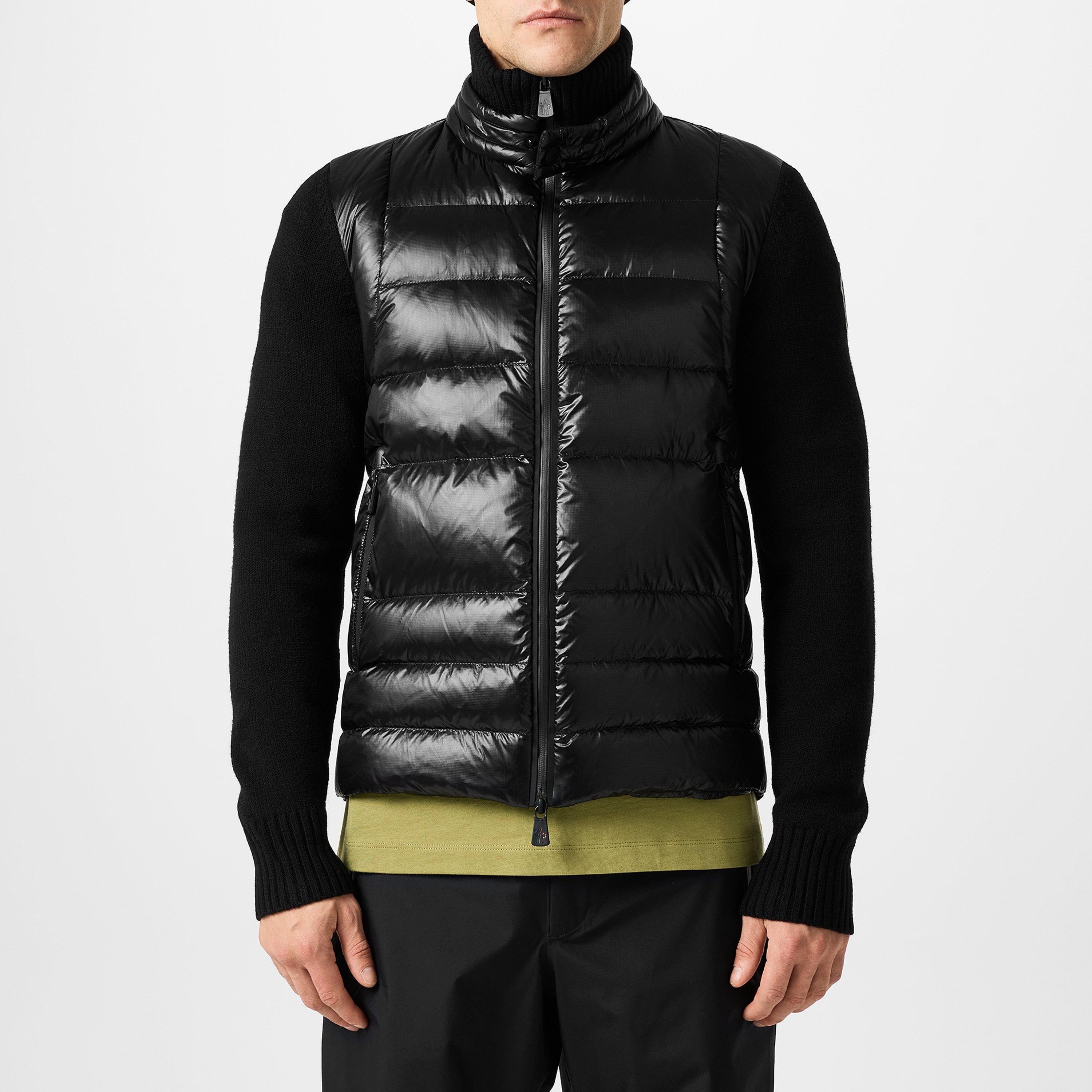 Moncler's Padded Wool Hybrid Jacket merges Italian quality with functional design. The snap-button collar and high neck provide excellent warmth, while the full-zip closure ensures a secure fit. Featuring the Moncler logo on the sleeve, this hip-length piece transitions smoothly from urban settings to outdoor environments.