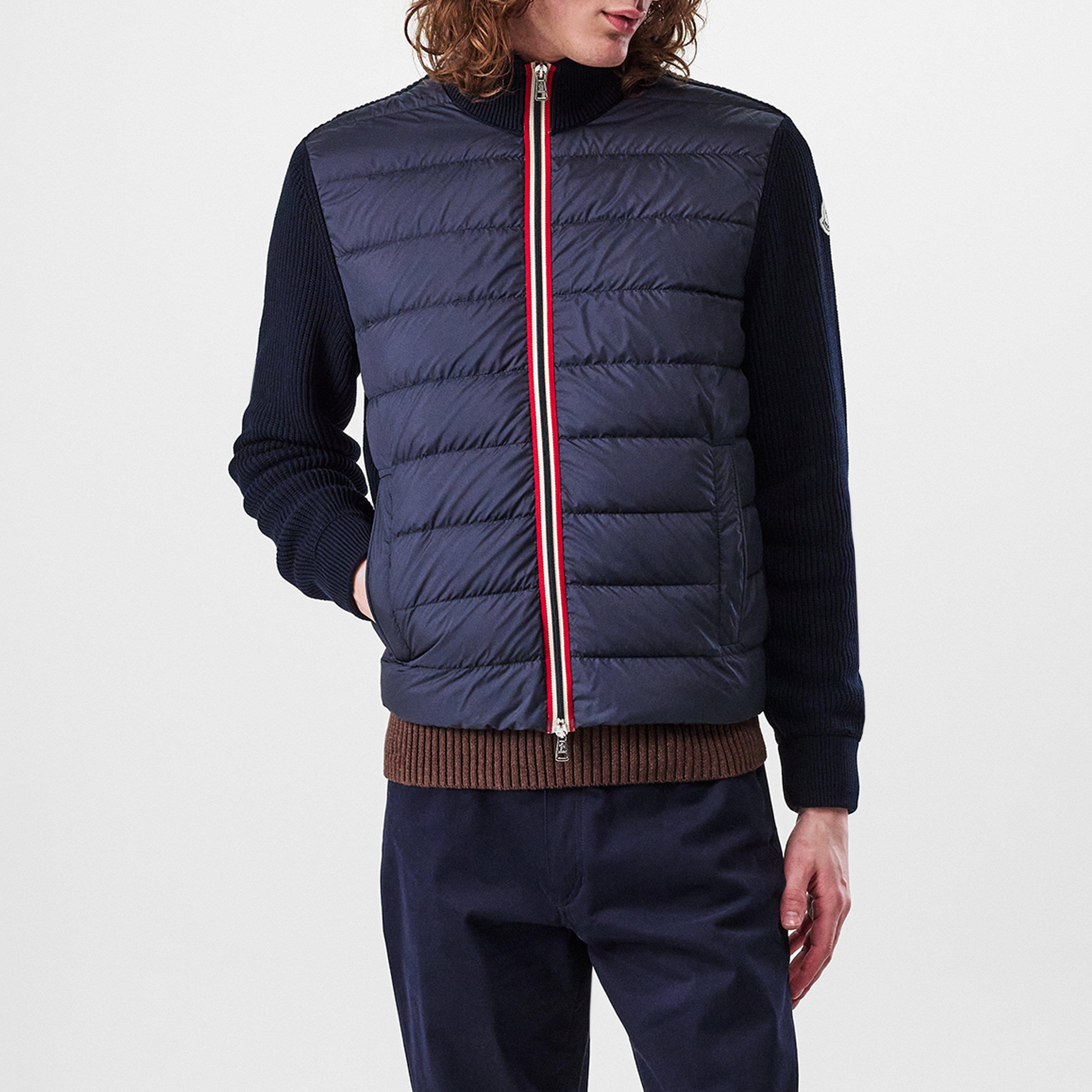 Update your cold-weather wardrobe with Moncler's Padded Long Sleeve Hybrid Jacket. This piece brings together down fill and a sleek design, featuring a high-neck funnel collar and embossed trim zipped pockets for protection against outdoor elements.