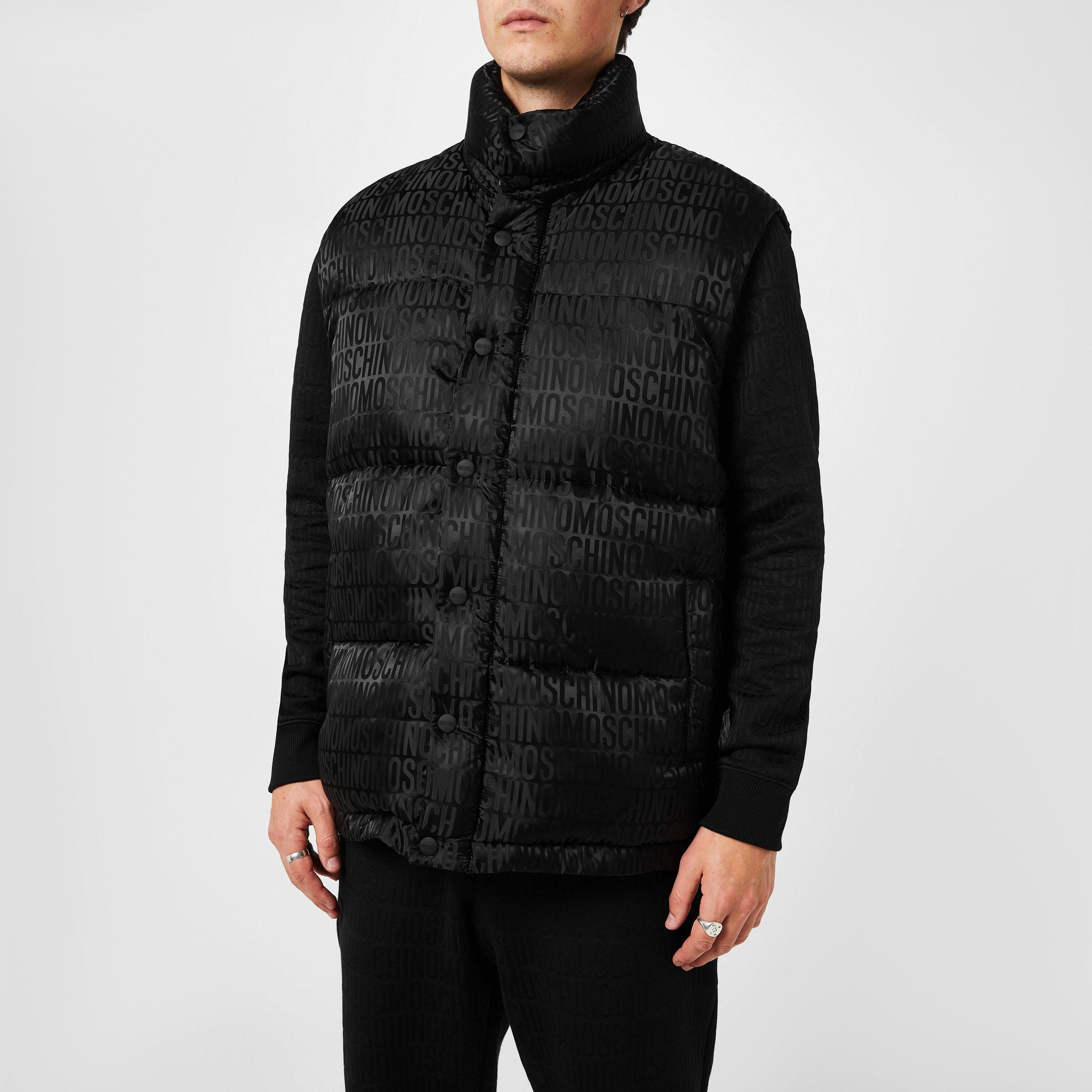 Moschino Men's All Over Logo Waterproof Padded Funnel Neck Sleeveless Gilet
