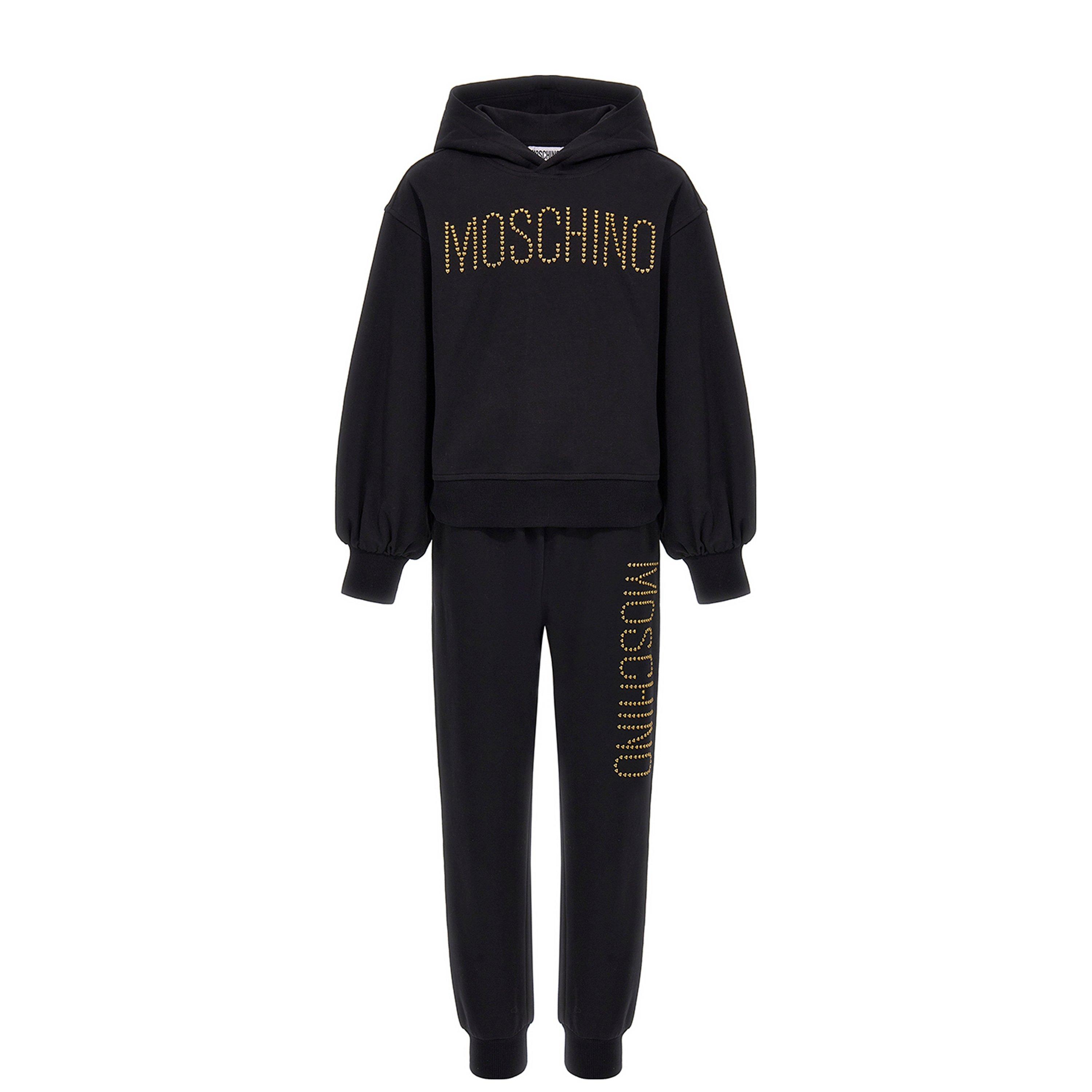 Moschino’s Stud Logo Tracksuit Set is a must-have designer staple for your youngster, featuring a sleek hoodie and joggers adorned with the iconic studded logo motif. Crafted for both comfort and style, this tracksuit offers a bold, fashion-forward look. Perfect for casual outings, running errands, or weekend get-togethers, it effortlessly combines luxury with laid-back sophistication.