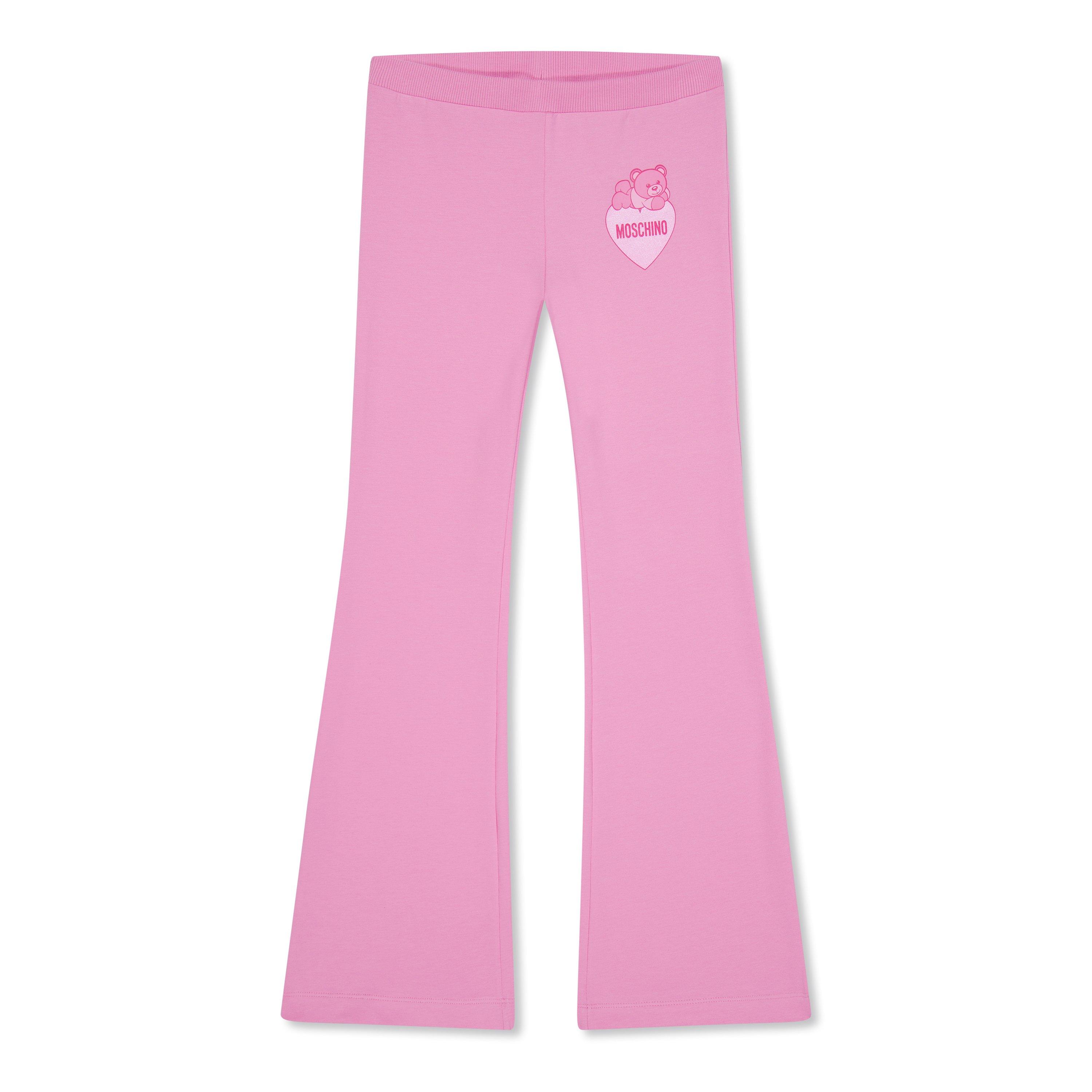 These Moschino Teddy Bear Motif Joggers feature the brand's signature Teddy Bear motif alongside a bold logo print on the side. Designed with a trendy flared silhouette and an easy pull-on style, they blend playful charm with everyday comfort. Perfect for adding a fun twist to casual outfits. Ideal for playdates or weekend outings with family.