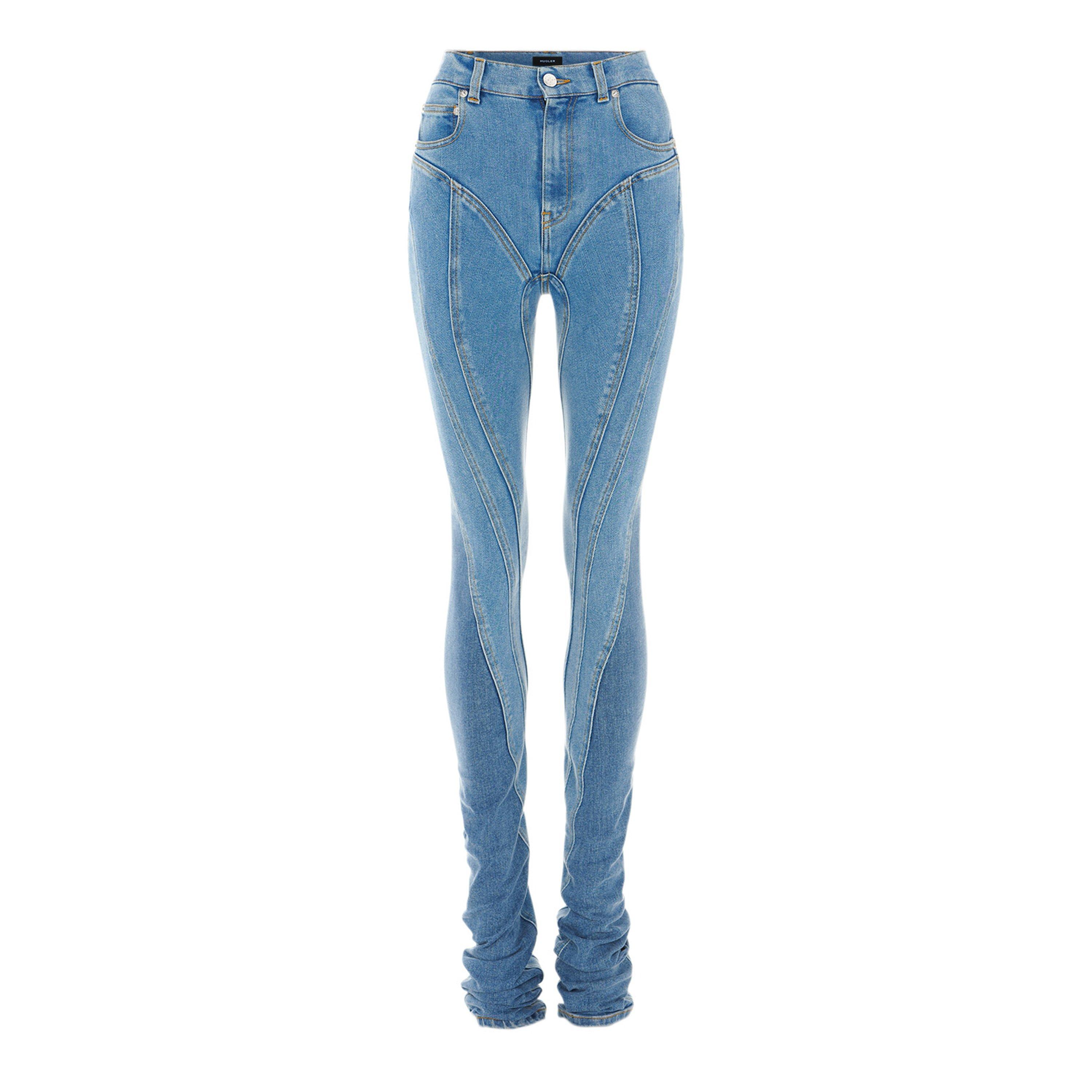 Refresh your collection of denim with the spiral jeans brought to you by Mugler. These wide leg, loose cut jeans showcase a traditional buttoned front with zip fastening and a signature multi seam spiral construction to the front. Crafted in Italy, these jeans have the classic Mugler feel and feature subtle branding throughout complete with a fabricated design to the rear for a contrasting style, designed with a sculpted fit and mixed material for a more unique, modern approach. Made from 72% Cotton and 28% Elastomustier.