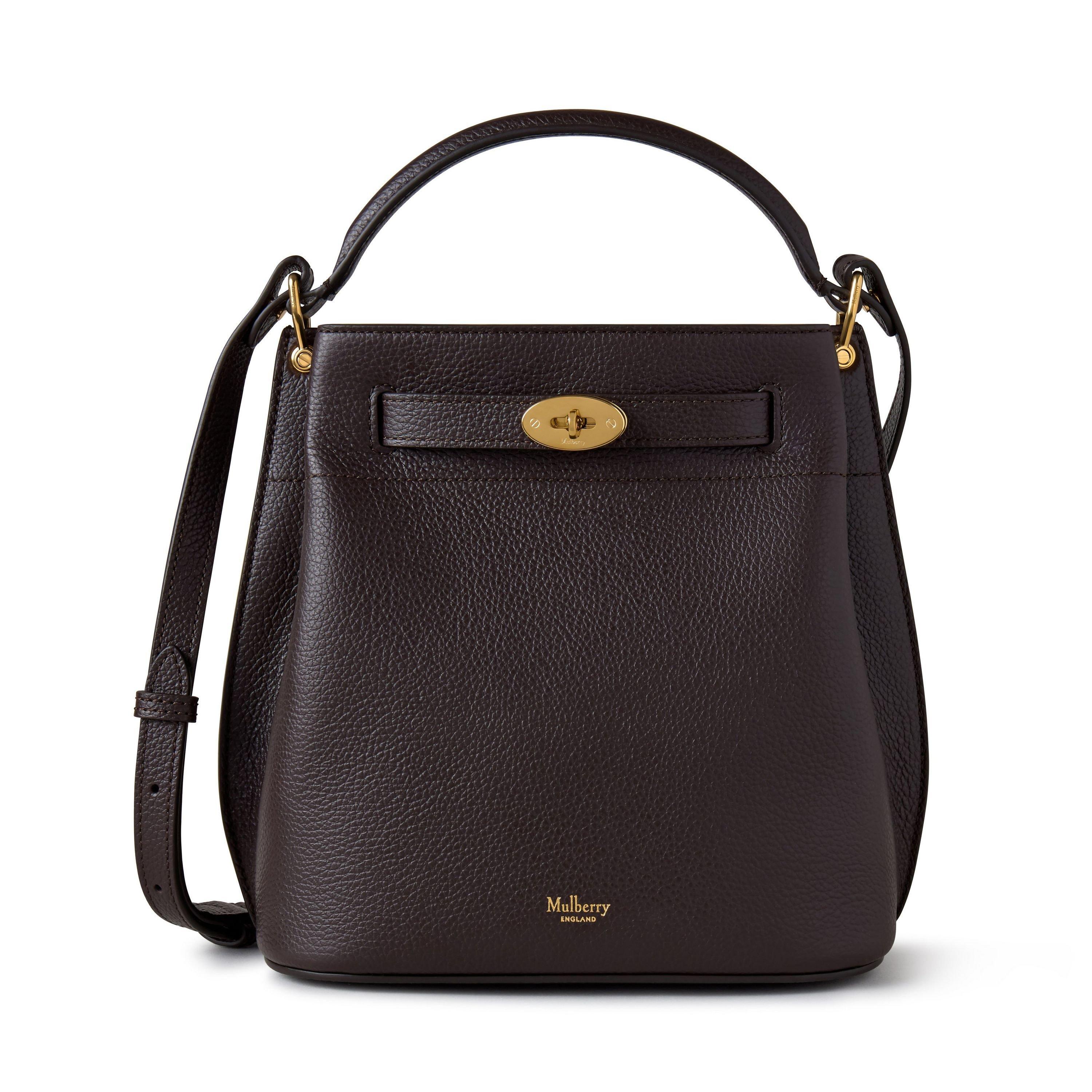 Mulberry's Mini Islington Bucket Bag brings together simple style and practical design. This compact designer handbag features a bucket shape with a secure drawstring closure and detachable crossbody strap.