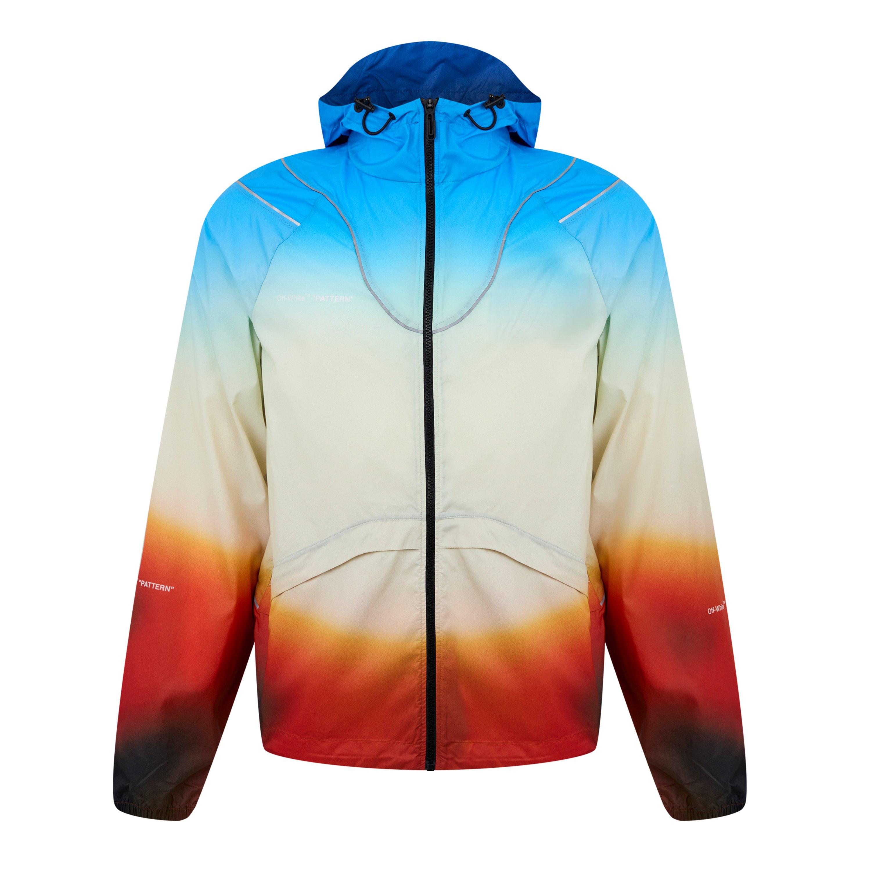 Off-White's Athlete All Over Print Long Sleeve Down Jacket offers bold visual impact and functional design. The contemporary windbreaker features a striking all-over gradient print, toggle hood, and full-zip fastening for athletic performance with standout street style.