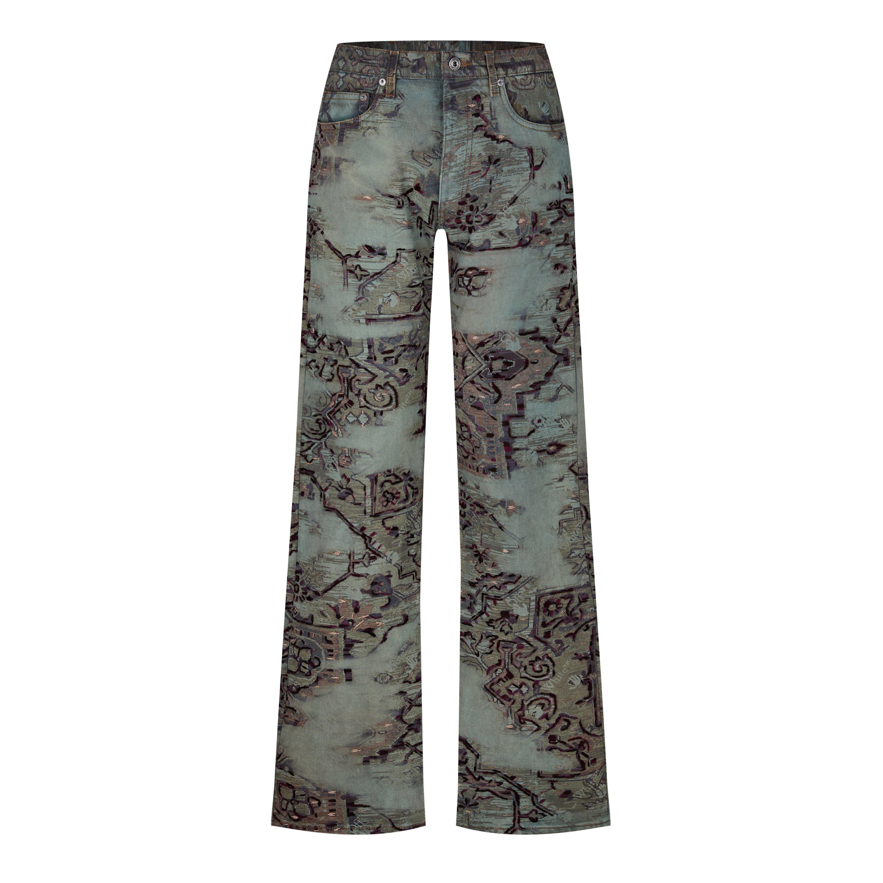 Make a statement with Off-White's Tapestry Jeans, where traditional denim meets bold artistry. These slim-fit jeans feature a striking faded tapestry print that commands attention, ideal for evenings out or creative social gatherings.