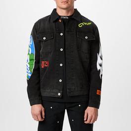 Men's Globe Collage Graphic Denim Jacket