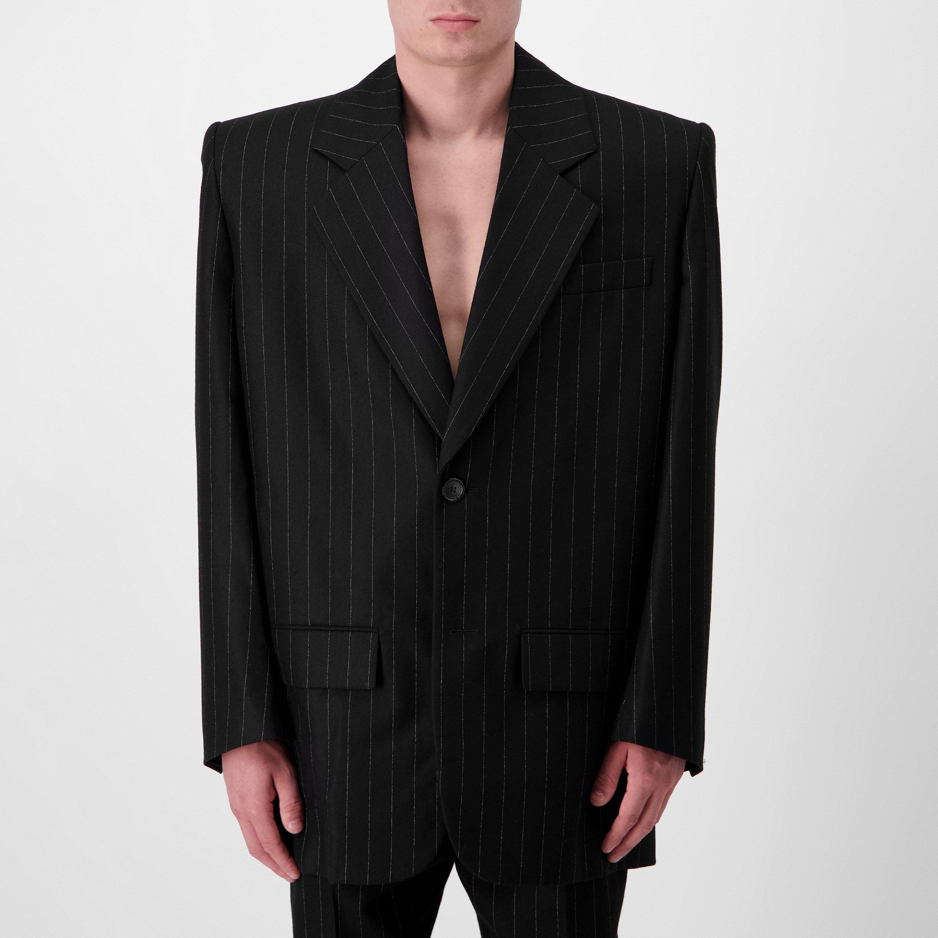 Men's Oversized Pinstripe Wool Long Sleeve Blazer