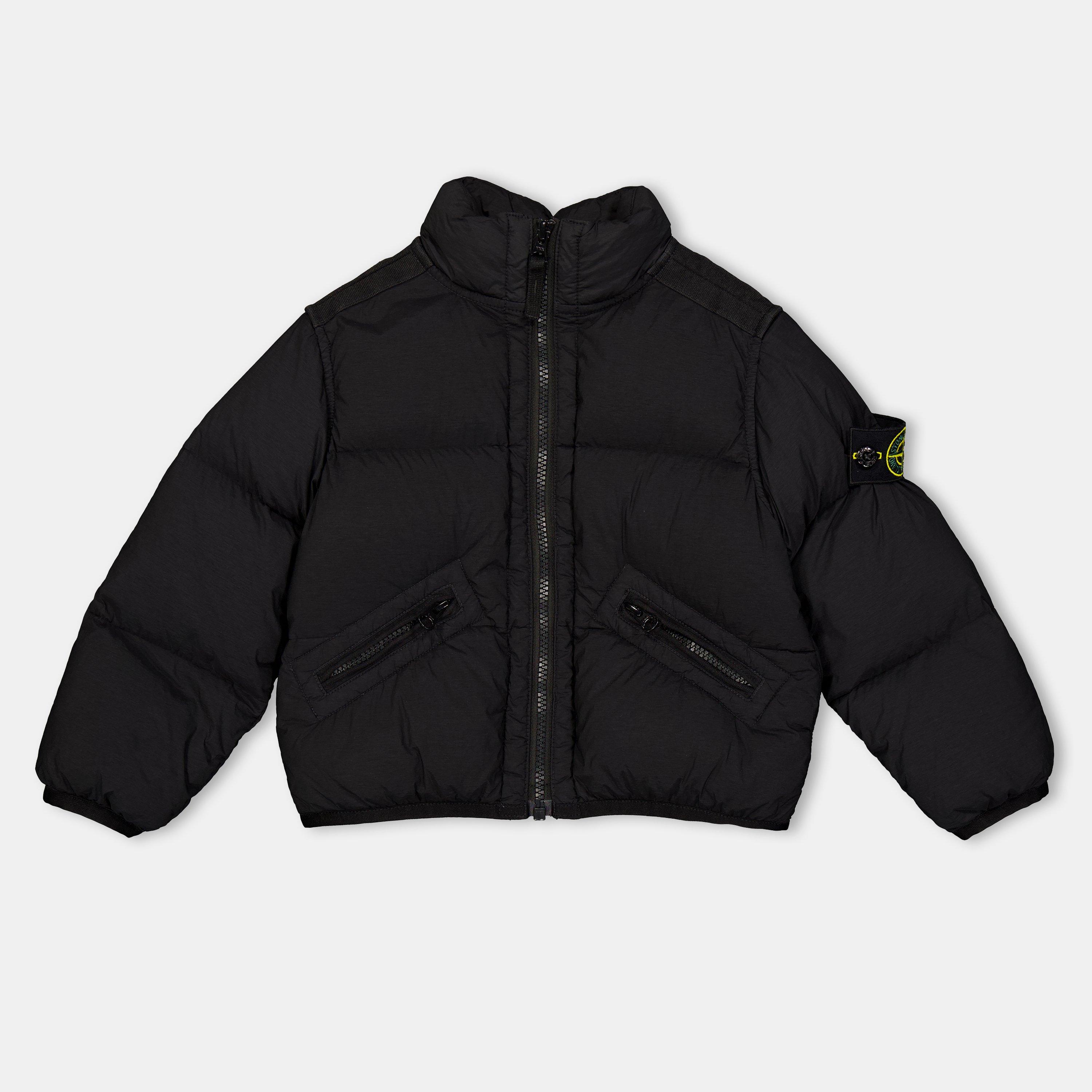 Stone Island's Kids' Long Sleeve Short Puffer Jacket delivers essential cold-weather protection with style. This hooded down outerwear features a standard fit with hip-length cut, making it well-suited for school commutes or weekend adventures while showcasing the Compass badge on the sleeve - ideal for active children.