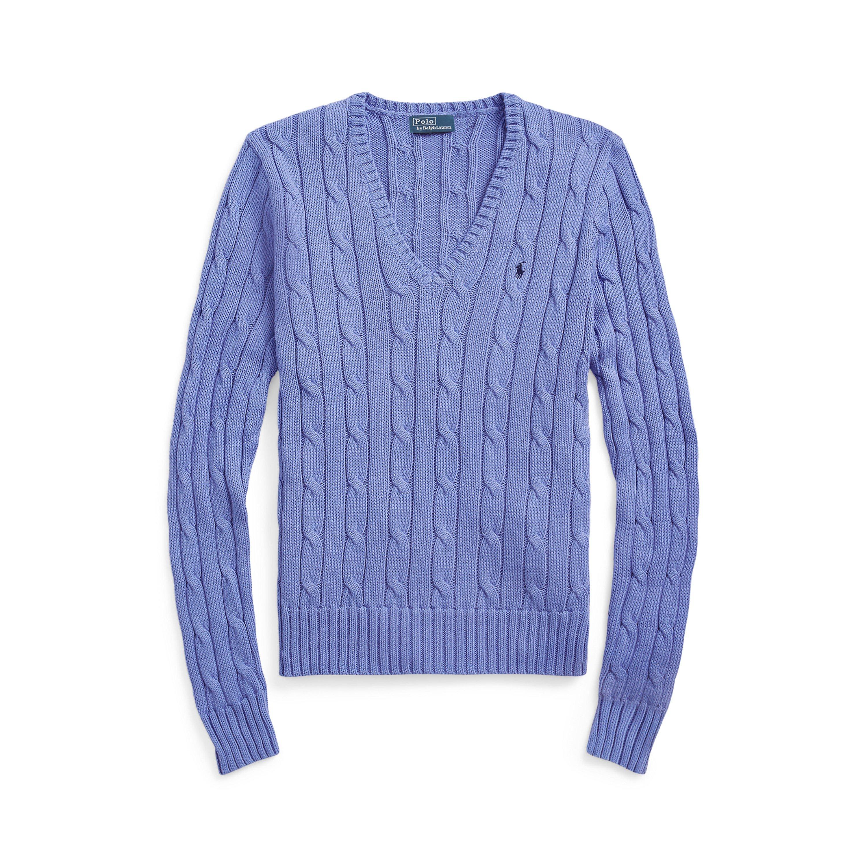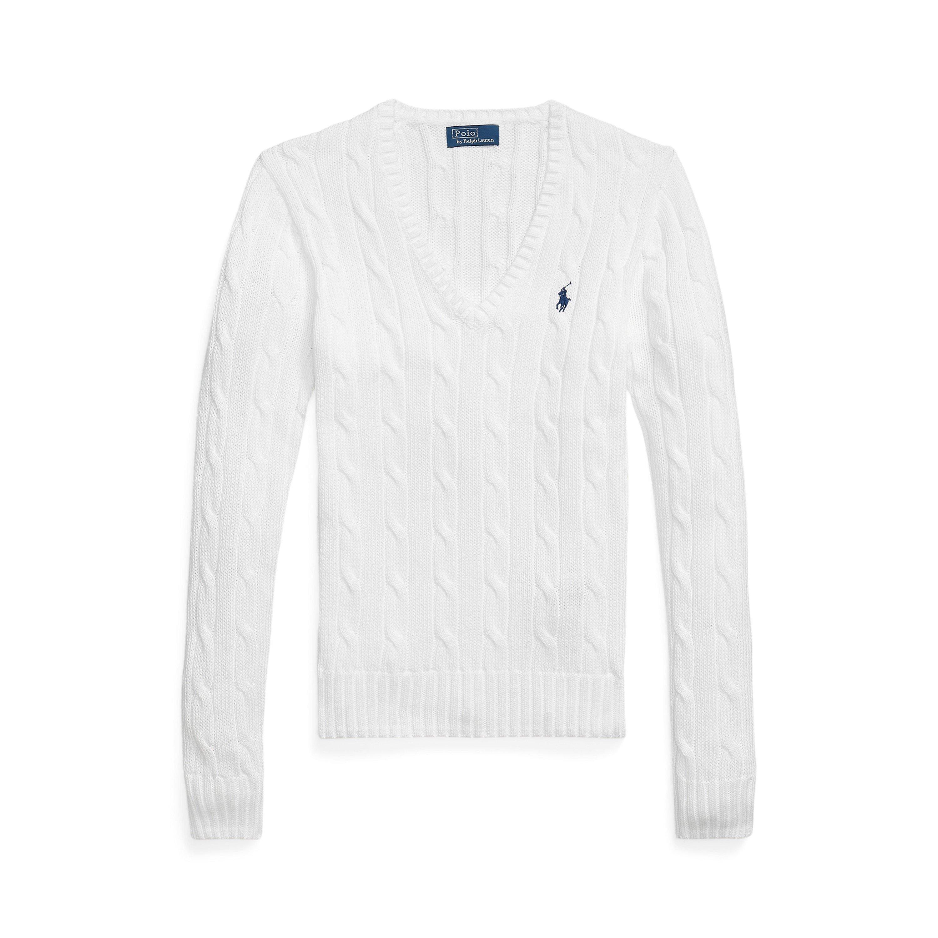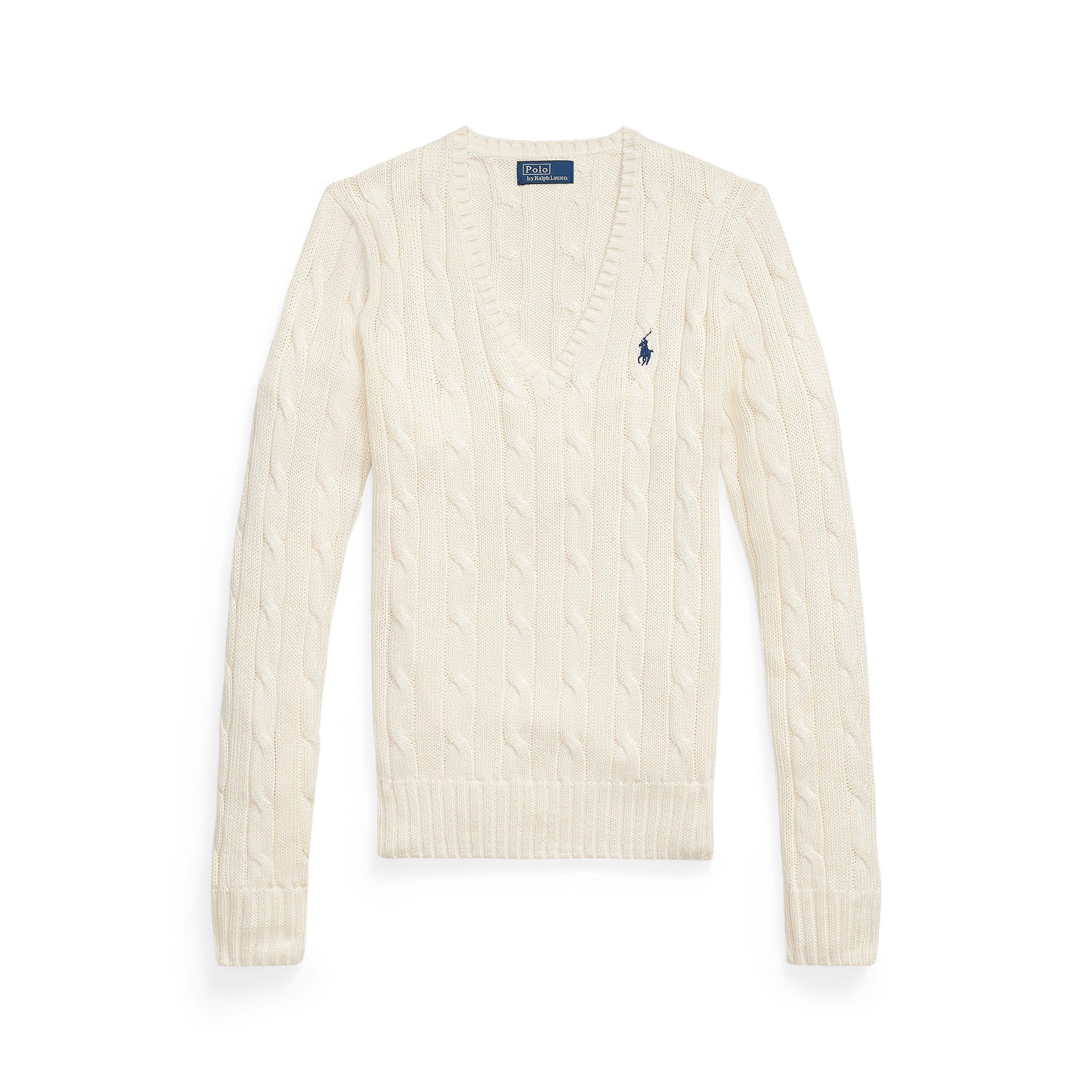 Timeless cable-knit patterns define this impeccably crafted Polo Ralph Lauren jumper. A classic V-neckline frames the design while the signature pony embroidery adds that distinctive mark of quality. The long sleeves and ribbed trims create a figure-flattering silhouette that works seamlessly with both casual and smart attire.